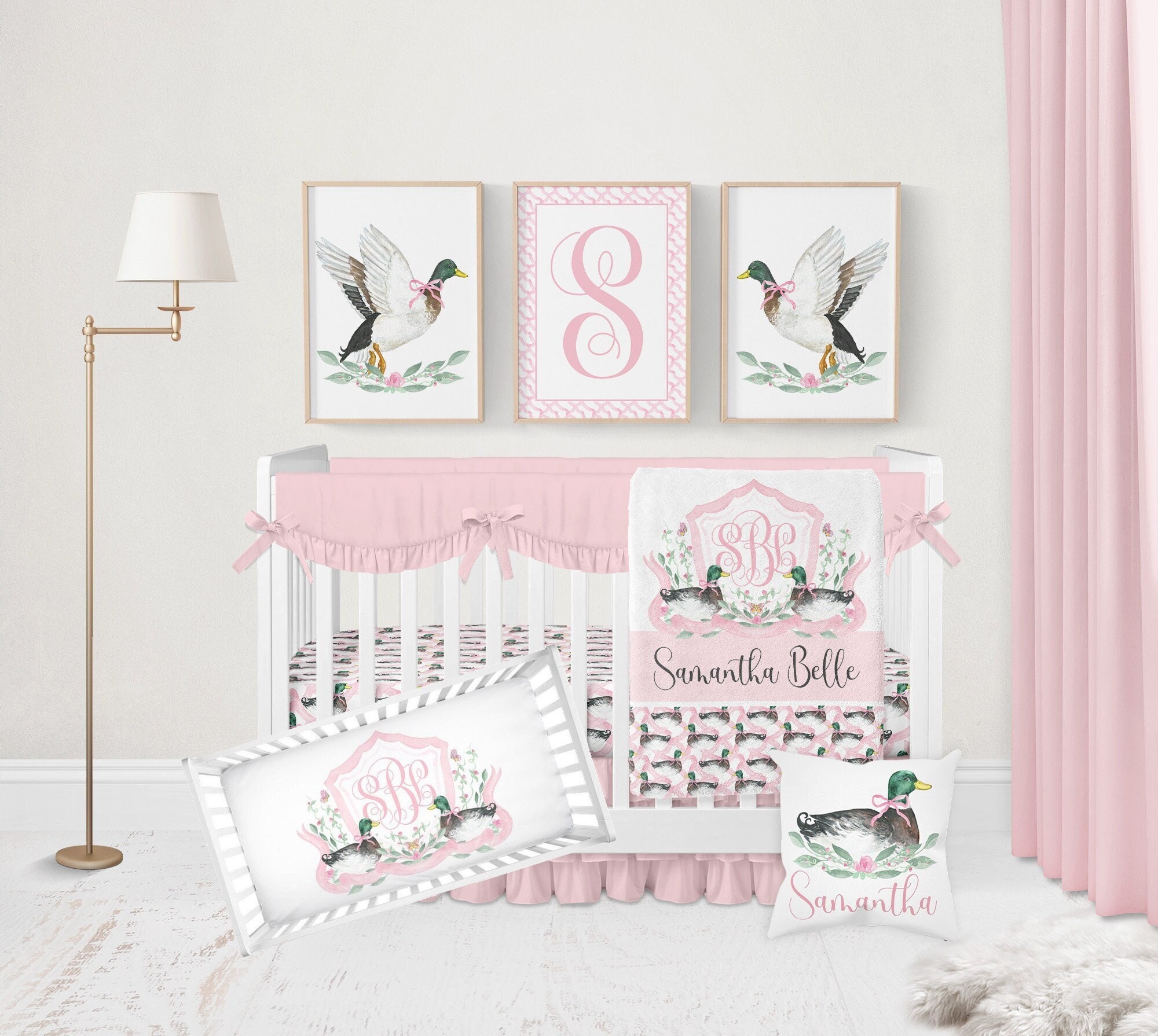 "Made just for your baby girl, you're going to LOVE this pink custom mallard duck crib bedding ...