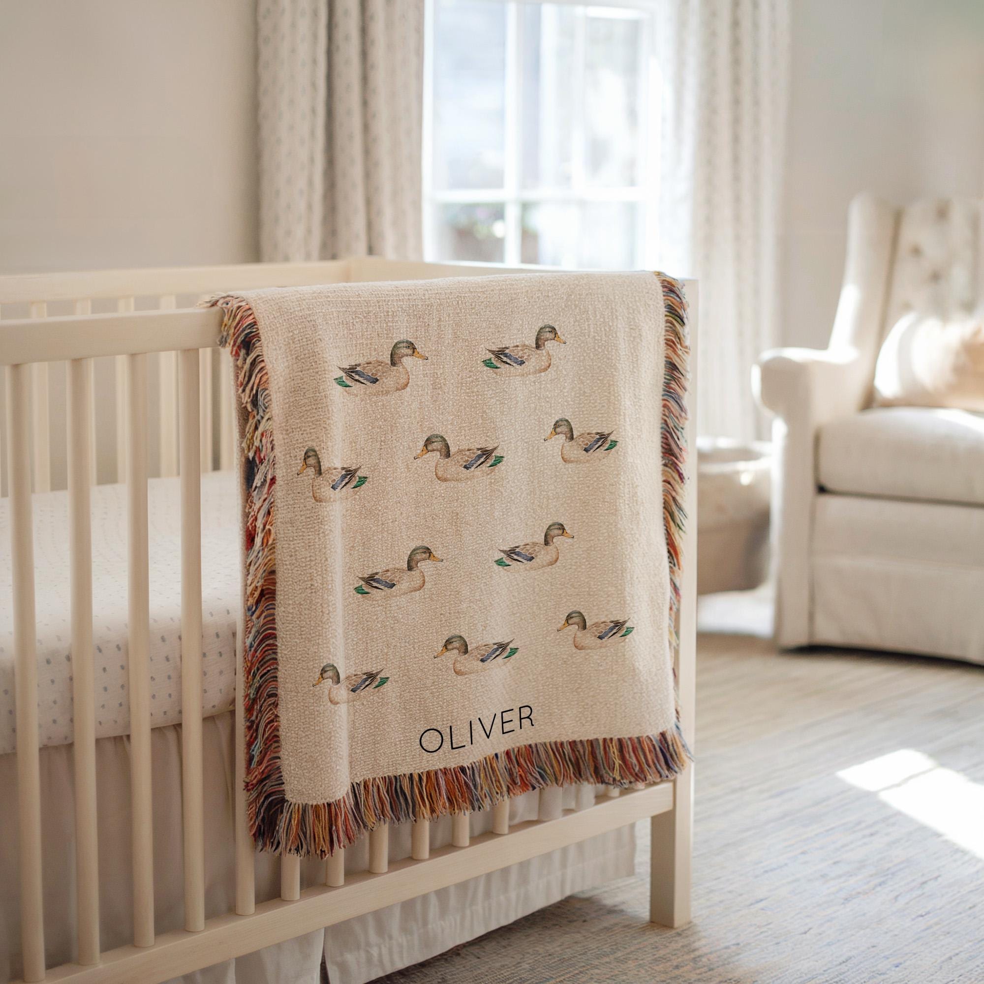 "Personalized Rubber Duck Baby Blanket - the perfect vintage duck baby shower gift and woven re...