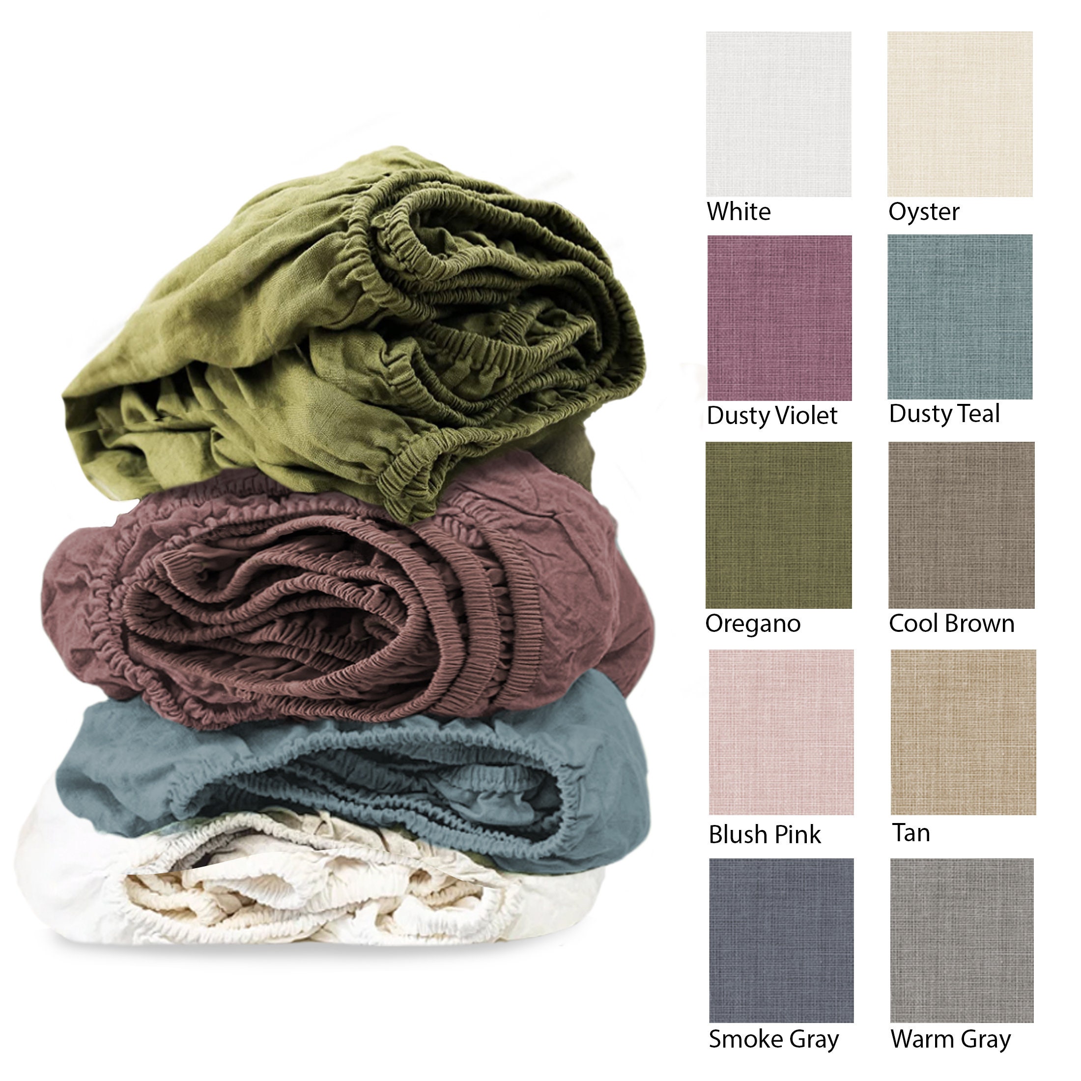 Fitted Bed Sheet, Fitted Linen Sheet, Linen Mattress Cover, Full Fi...
