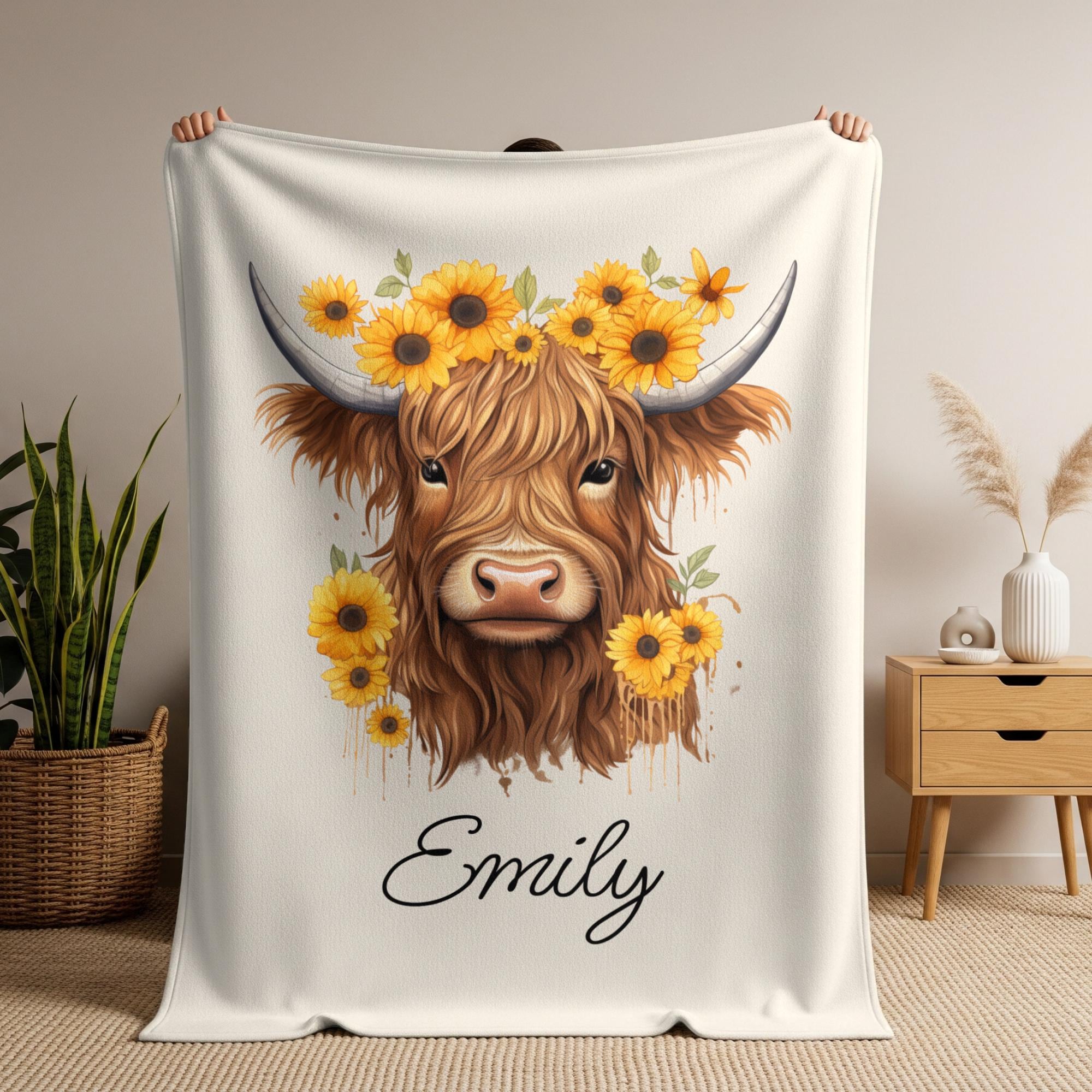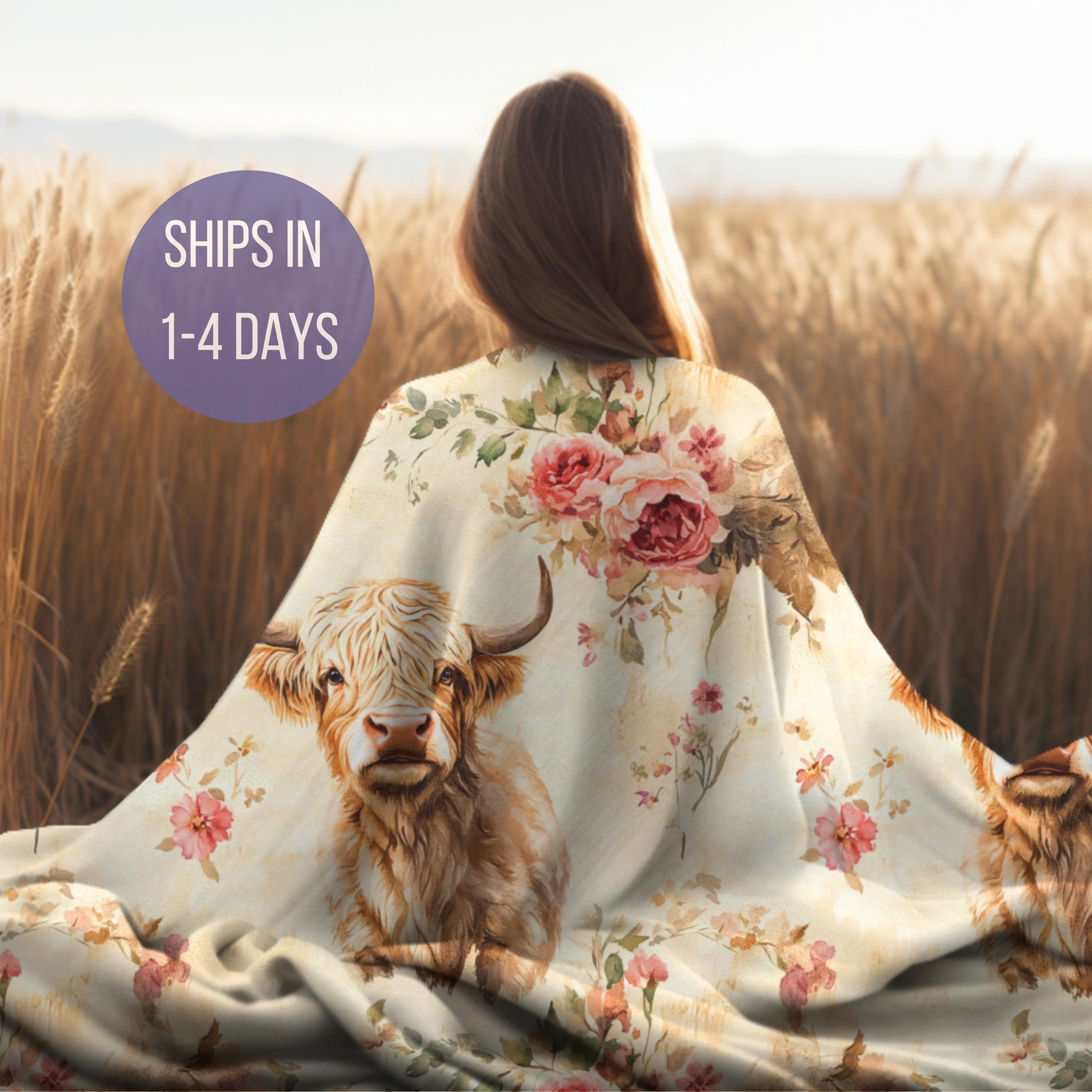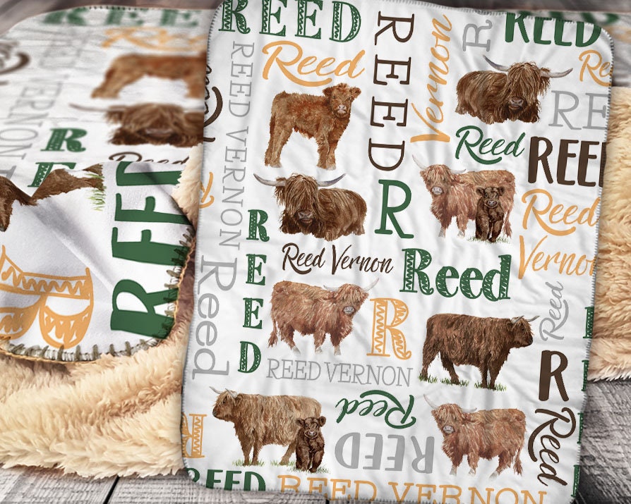 Personalized Highland Cow Blanket, Highland Cow Gift, Custom Name C...