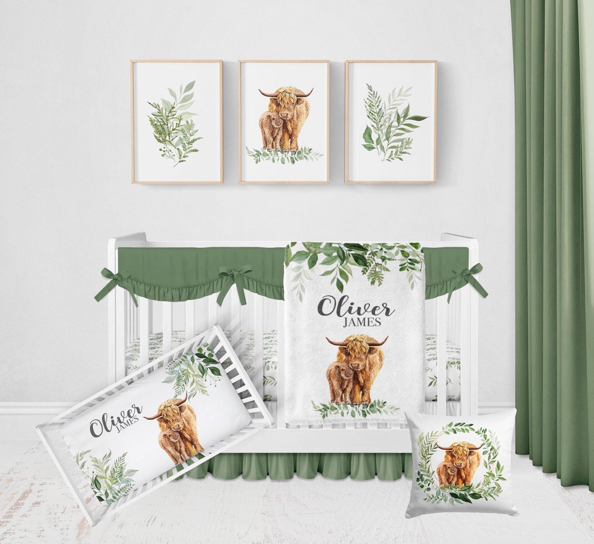 "Create a stunning nursery for your baby boy with this adorable highland cow crib bedding set. ...