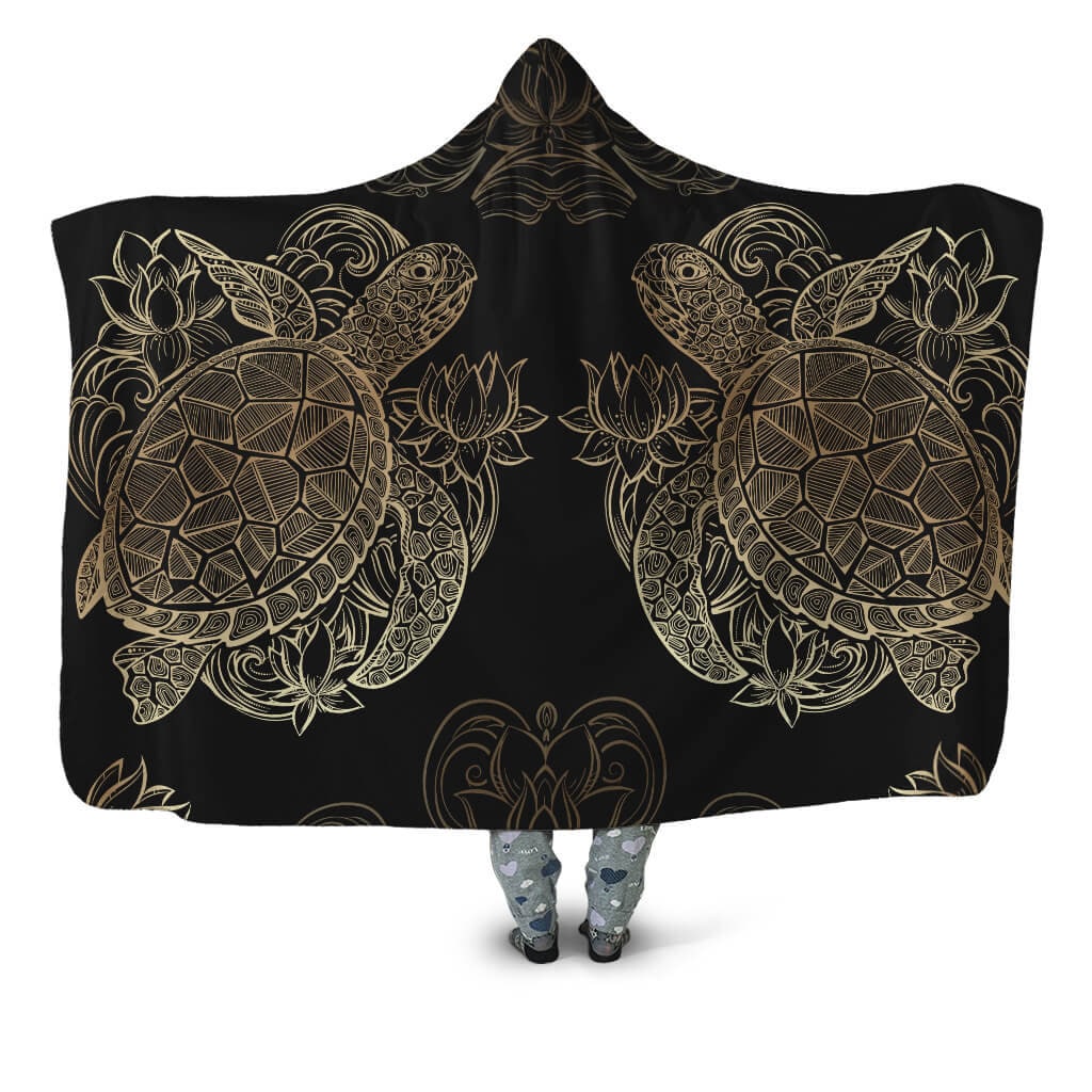 Sea Turtle Hooded Blanket, Hooded Turtle Throw, Gold Sea Turtle Lov...