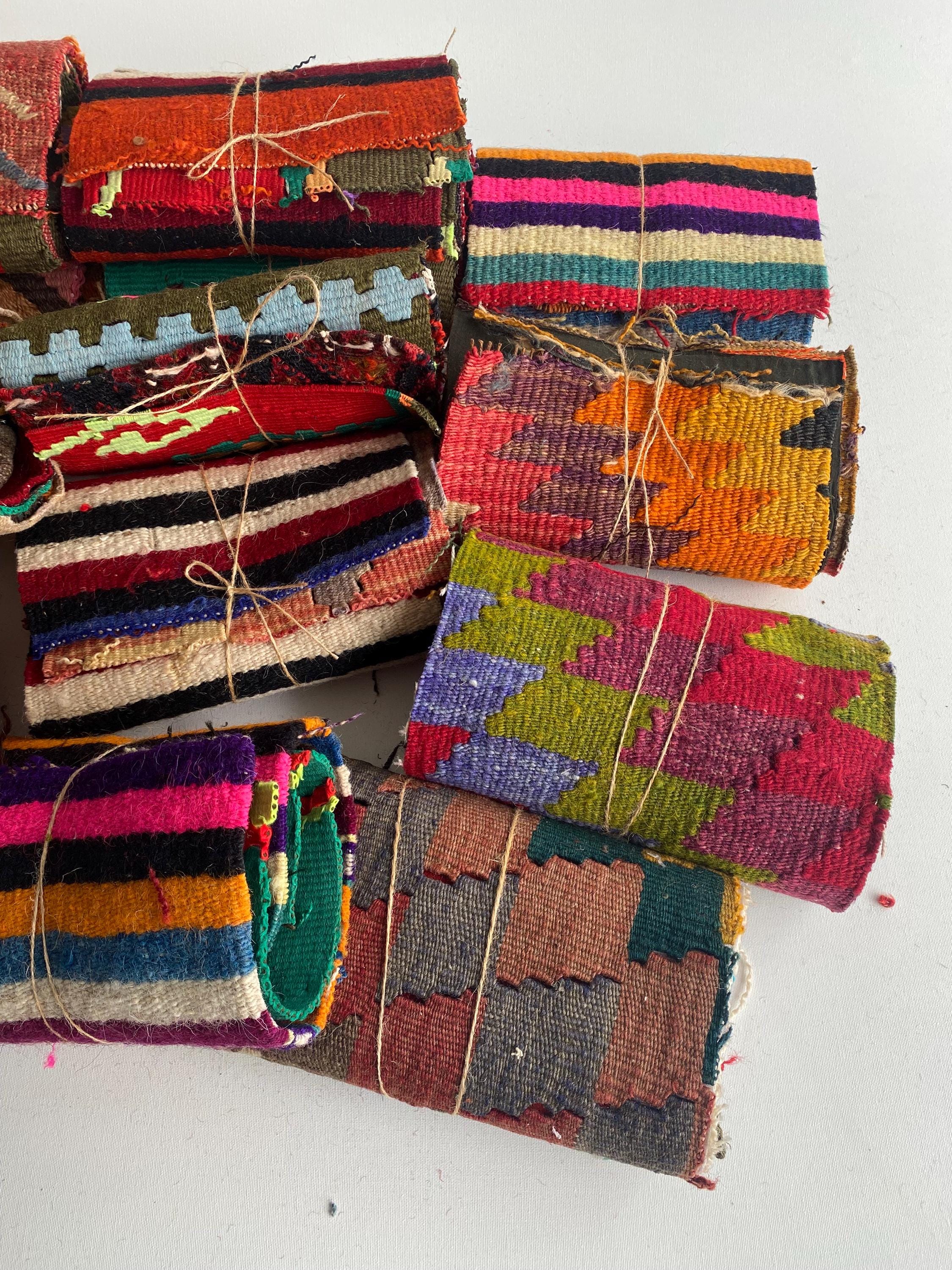 Hand Woven Natural Wool Fabric Remnants, Kilim Scraps, Ebrodered, K...