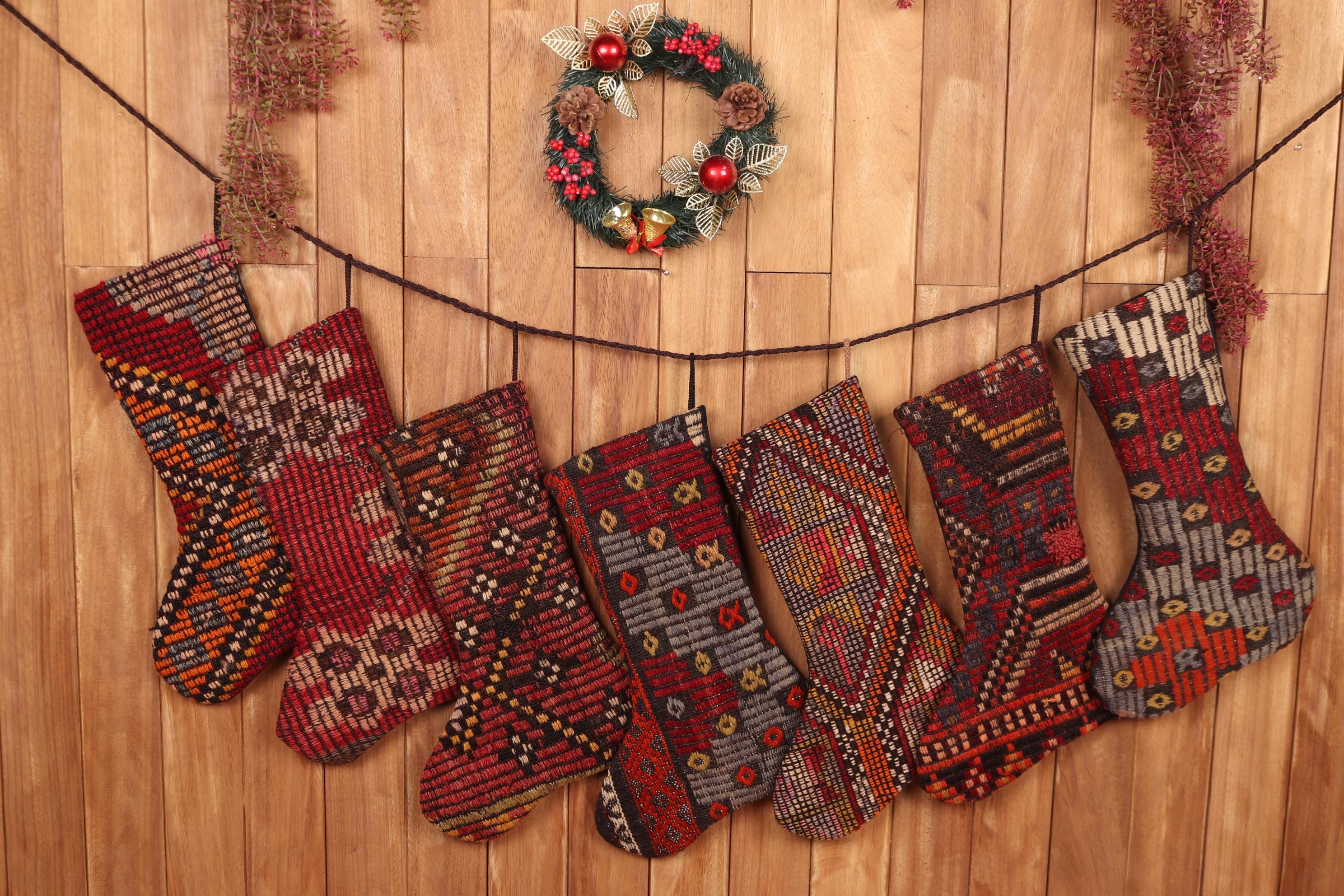 Christmas Stocking, Vintage Kilim Stocking, Hand Woven Kilim Stocki...
