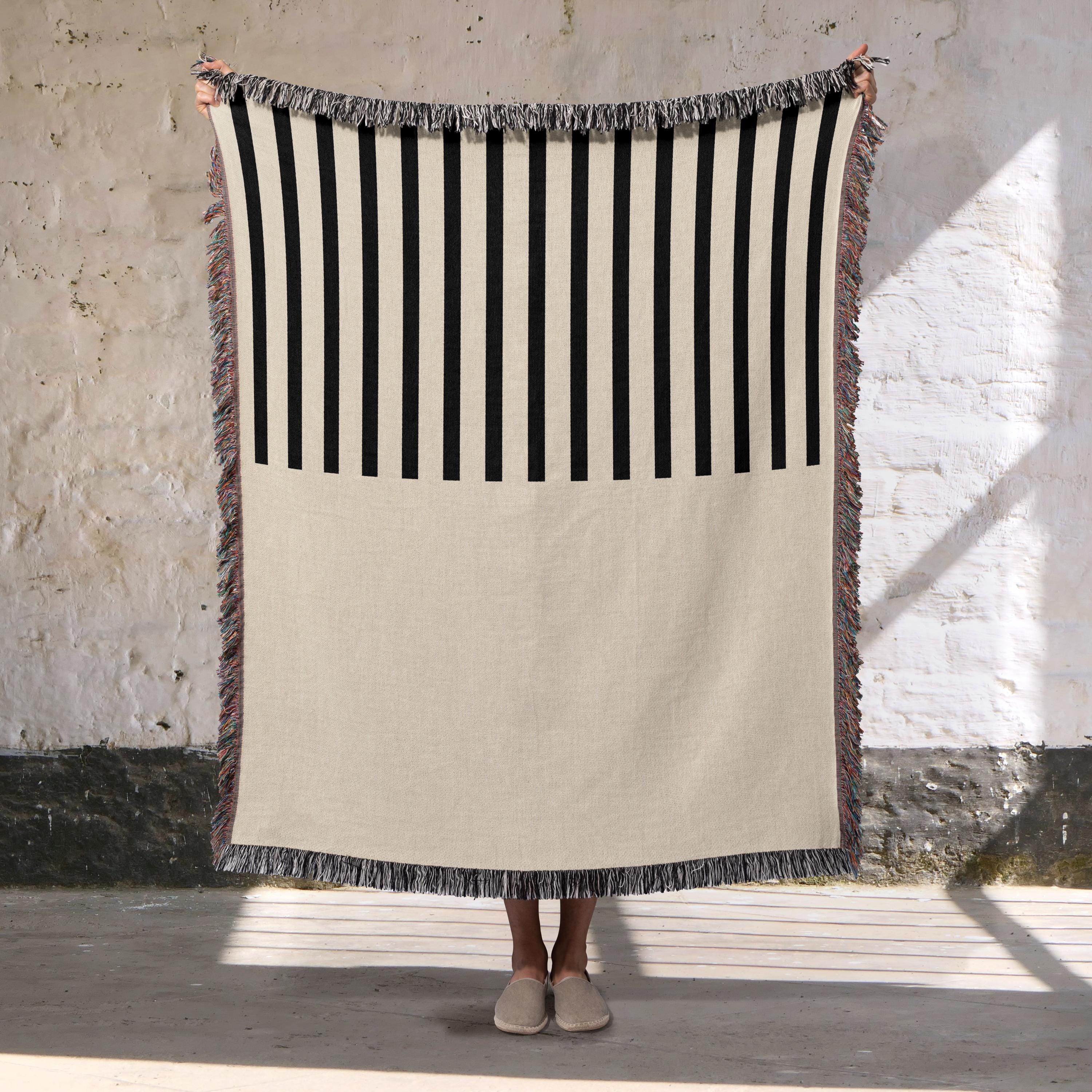 Thanks for checking out this Black & Whiite Modern Stripe Throw Woven Blanket. Crafted from 100%...