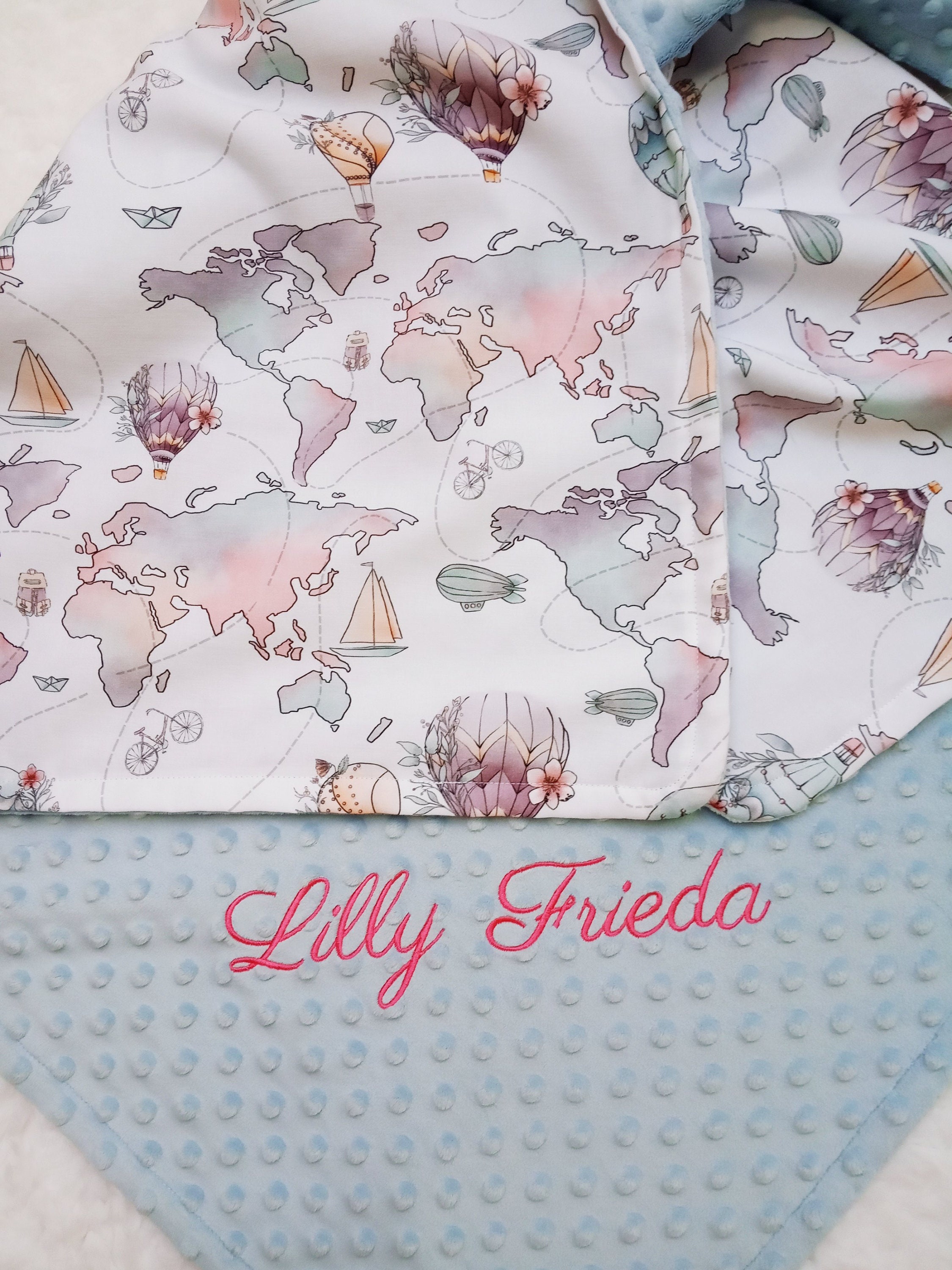 World Map Animal Baby Blanket & Hat Set Introduce your little explorer to the wonders of the wor...