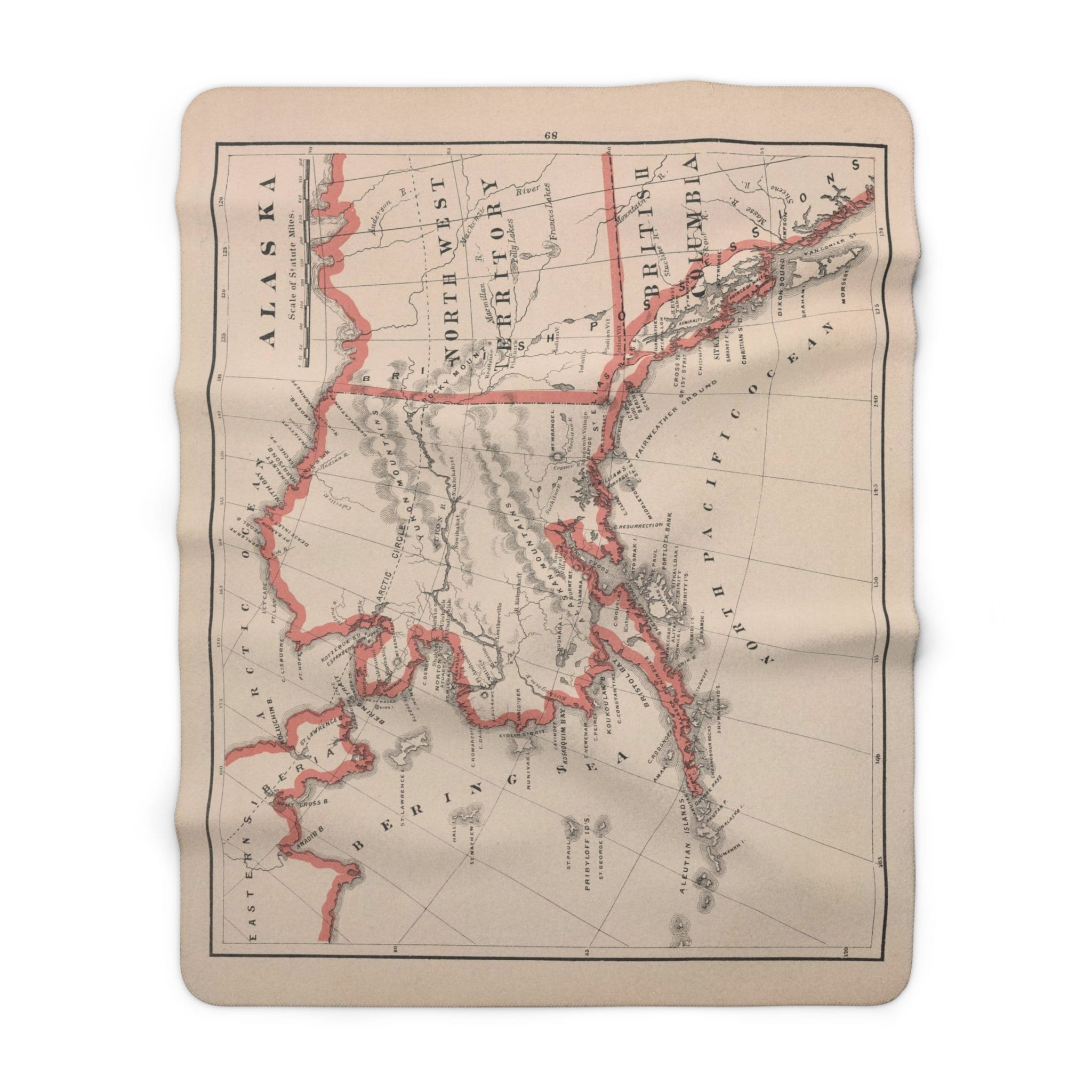 1883 Vintage Map of Alaska Sherpa Fleece Blanket, World Map Print, ...