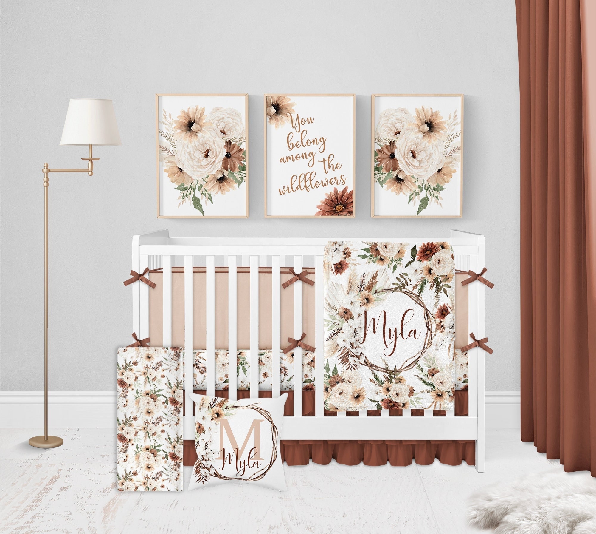 "Boho Floral Crib Bedding Set Create a beautiful and one of a kind nursery for your little one ...