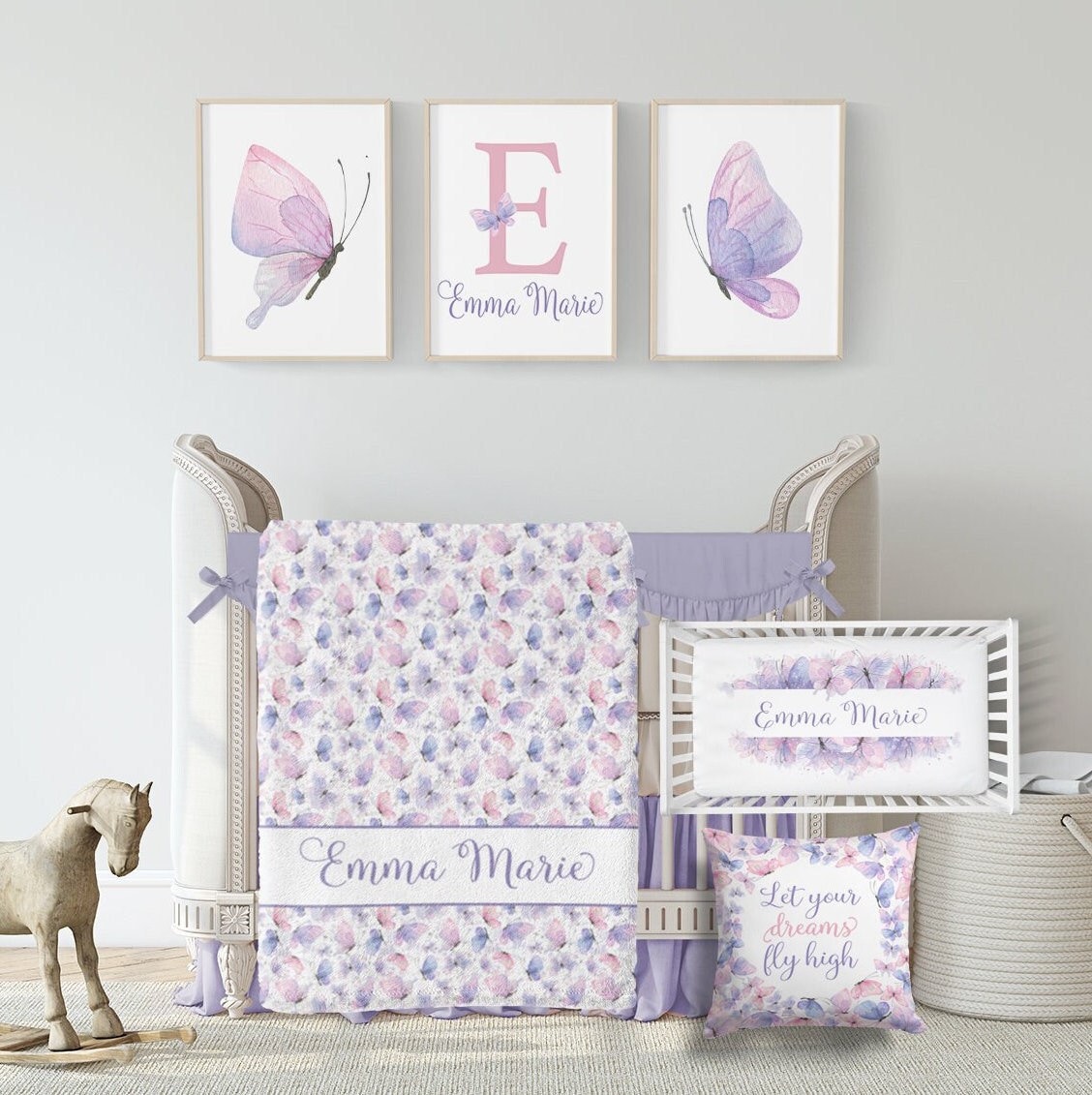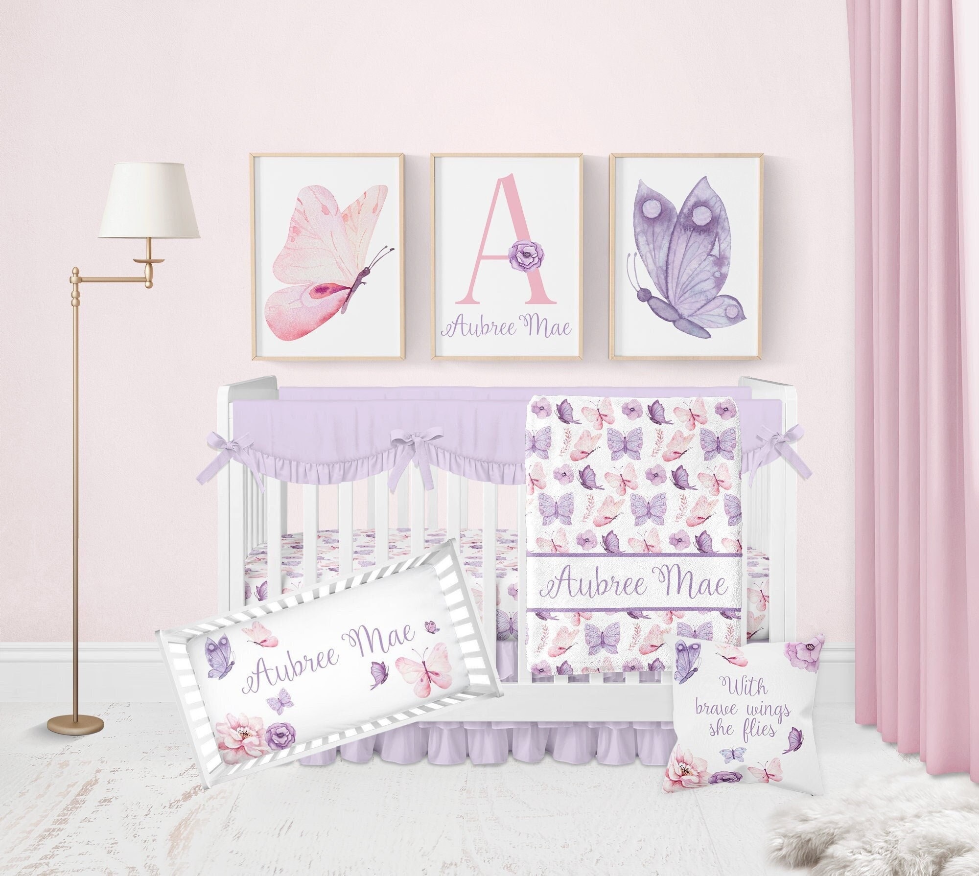 "Custom Purple Pink Butterfly Crib Bedding Set Create a stunning nursery for your baby girl wit...