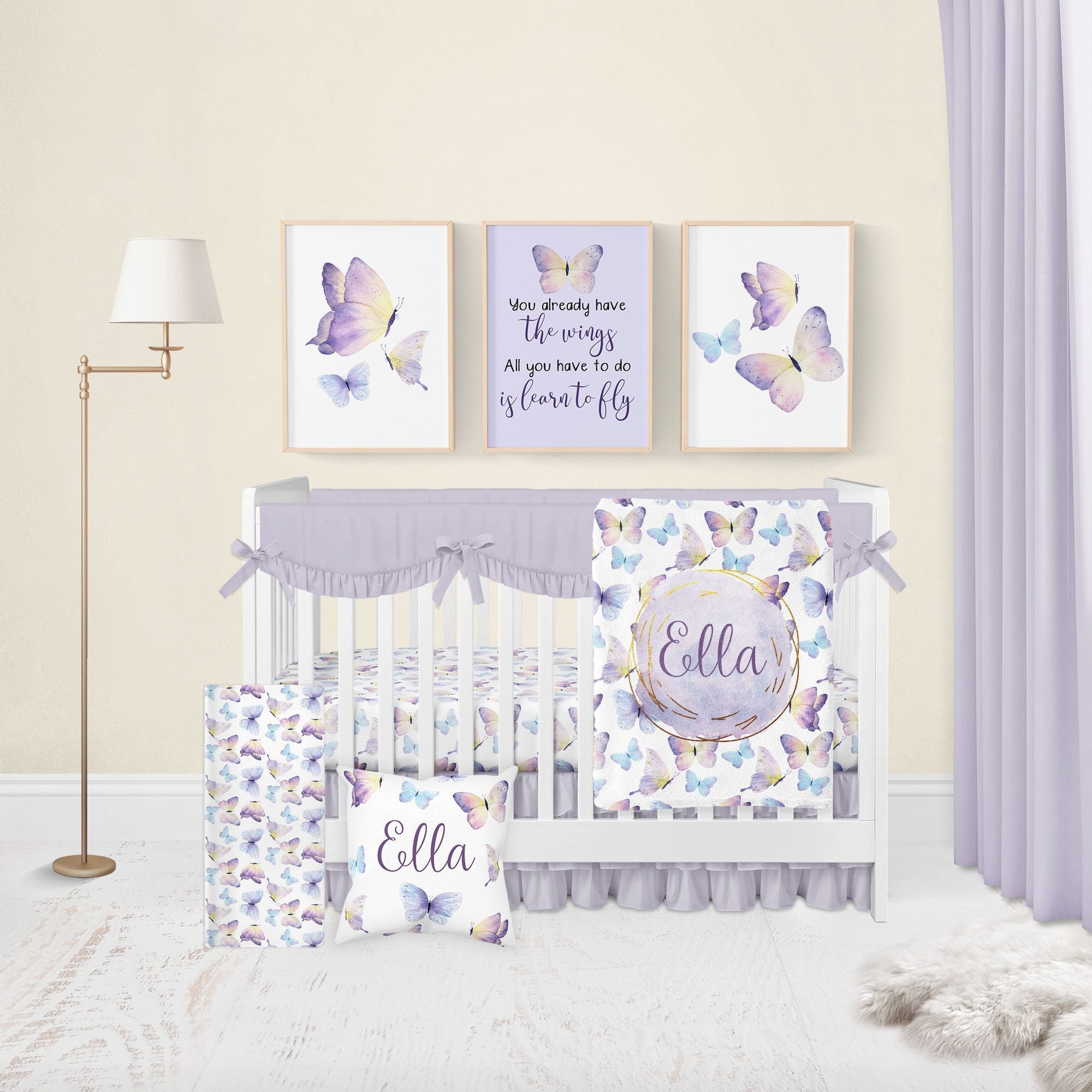 "Made just for your baby girl, you're going to LOVE this personalized purple butterfly crib bed...