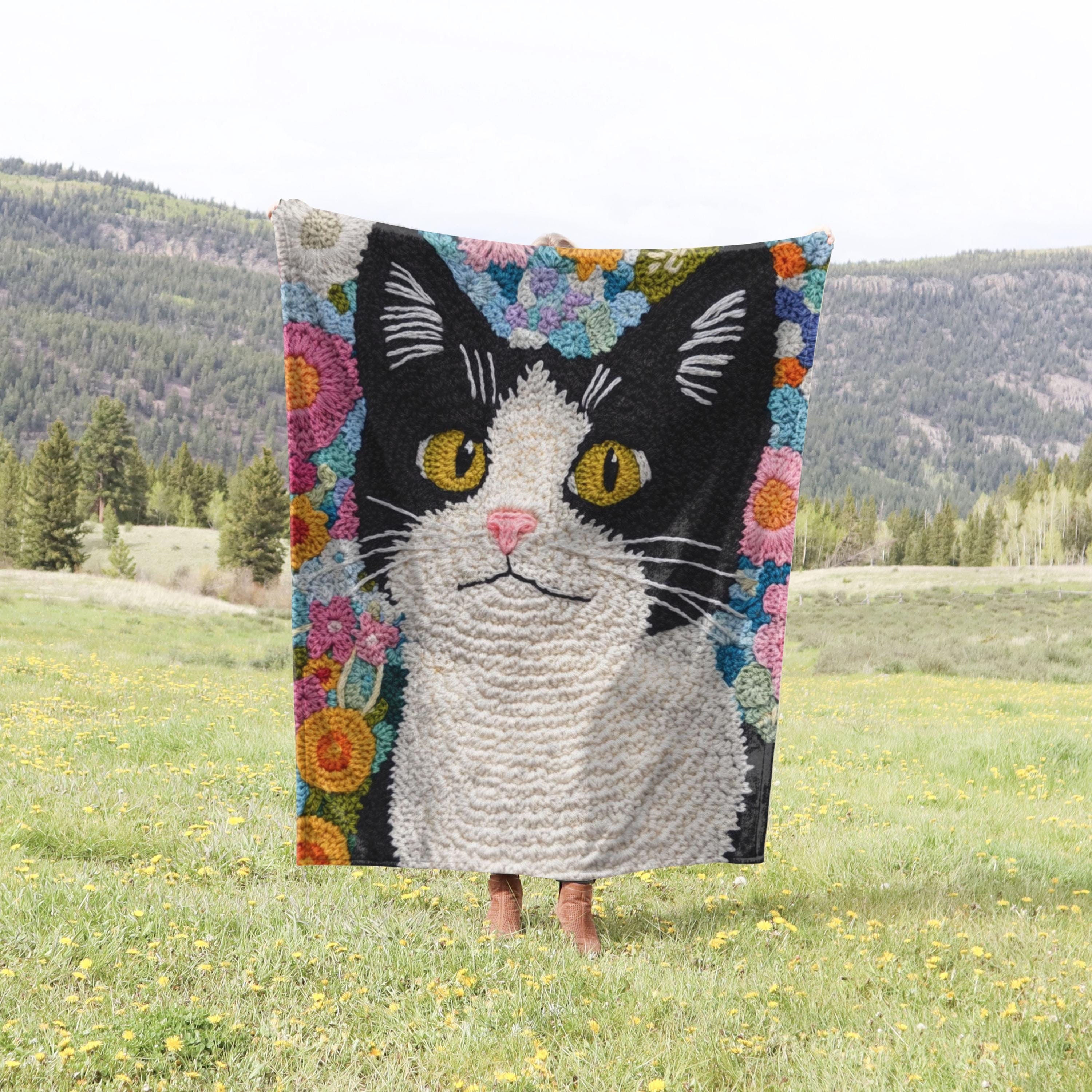 Tuxedo Cat Blanket, Crochet Cat Minky Blanket, Cat Lover Gift, Croc...