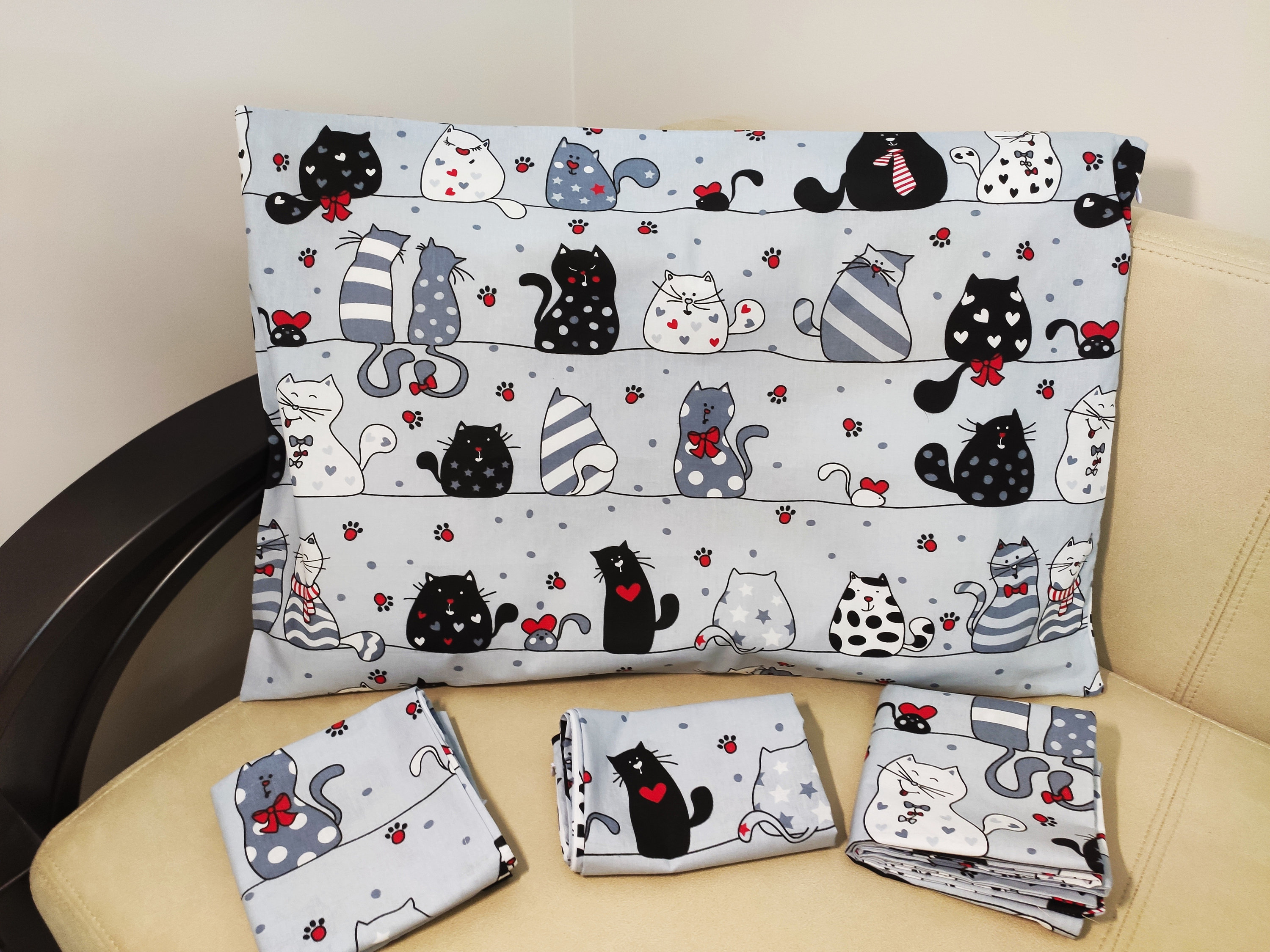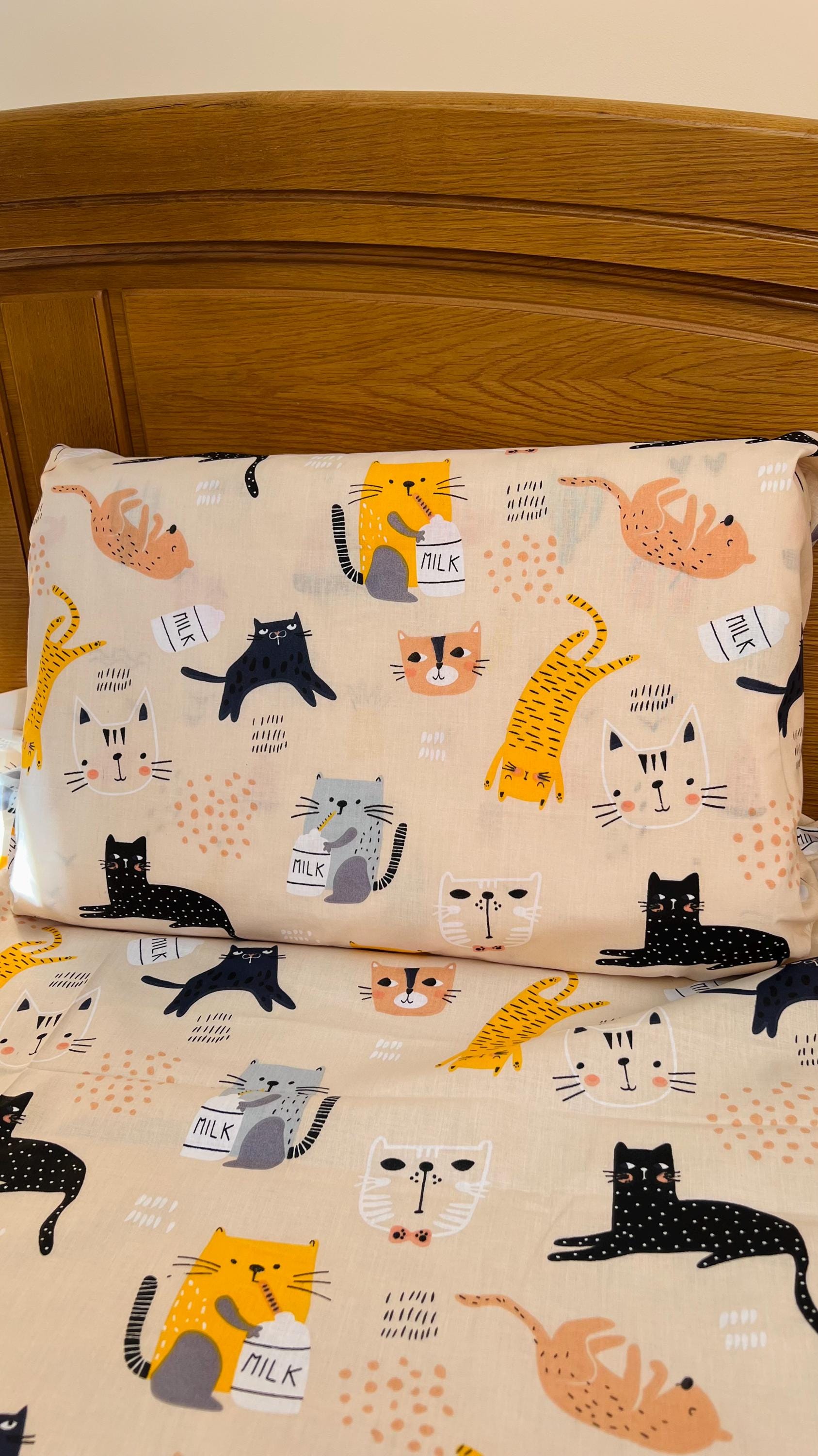 Beige cats pillowcases, beige cats fitted sheet, beige cats toddler...