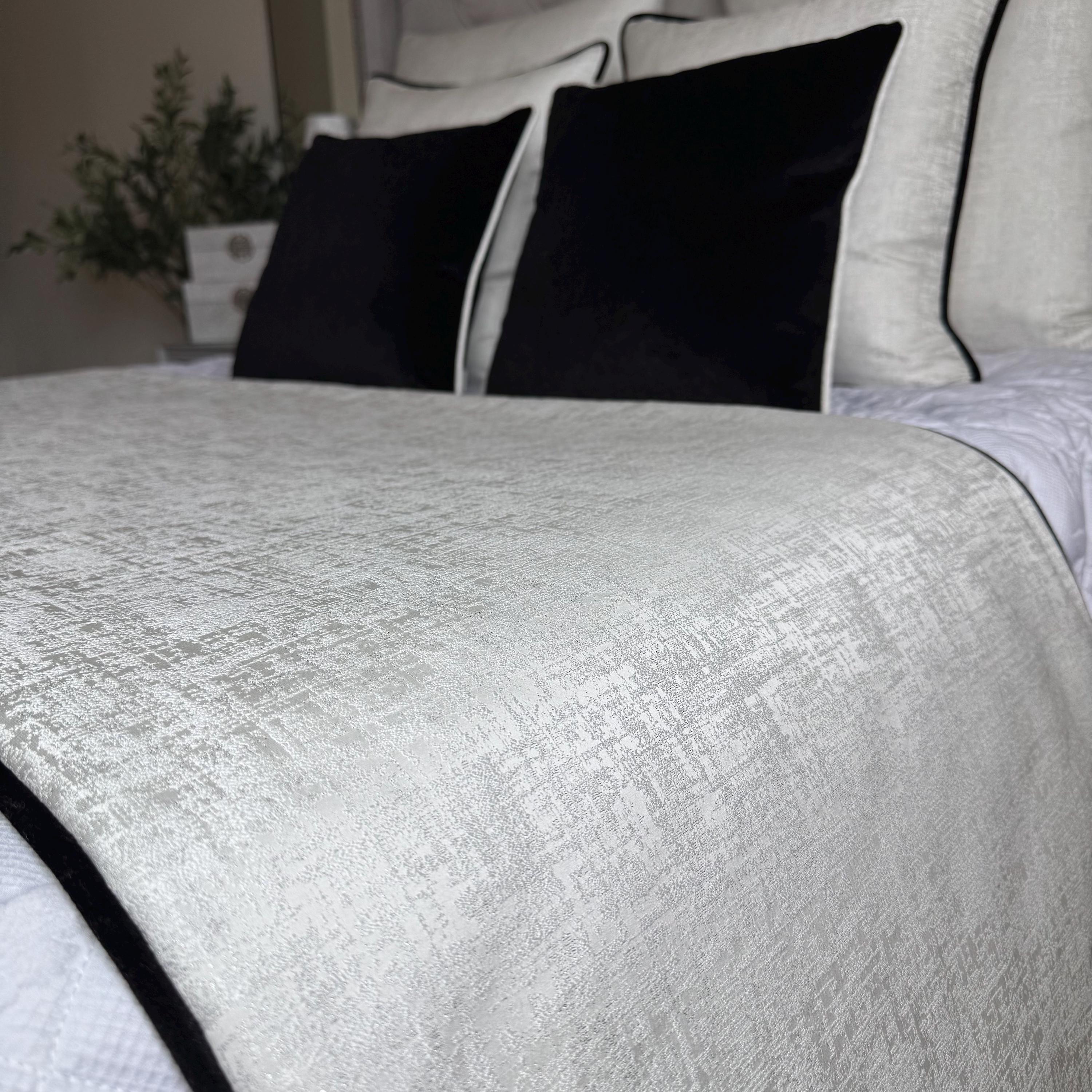 Bed Runner, Piped Bed Throw , Double, King Size, Super King, Grey Black Bedding Set, Luxury Bed Runn...