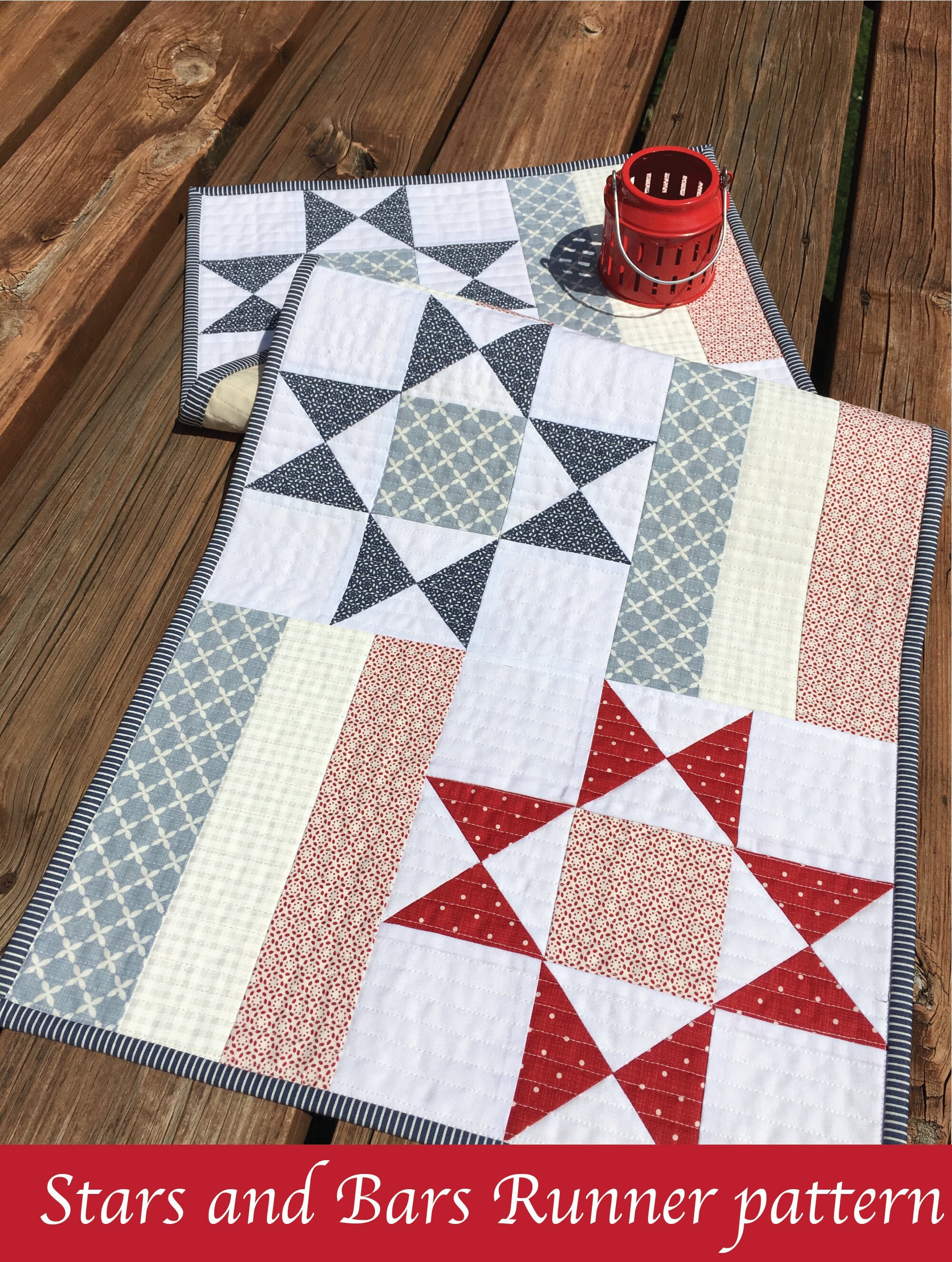 Stars and Bars Runner DIGITAL PDF Quilt Pattern: yardage, fat quart...