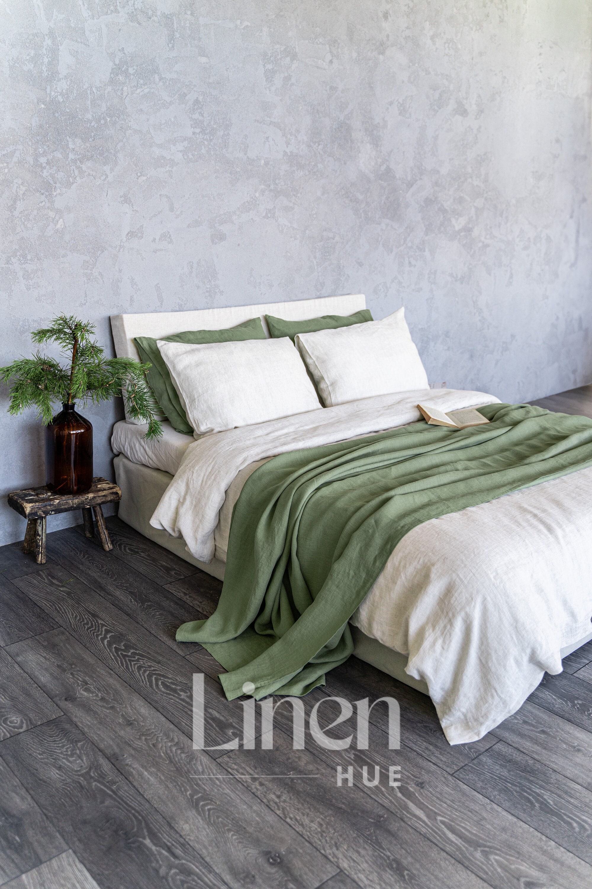 Natural Linen Bedspread | Linen Bed Throw | Natural Bed Cover | Rus...