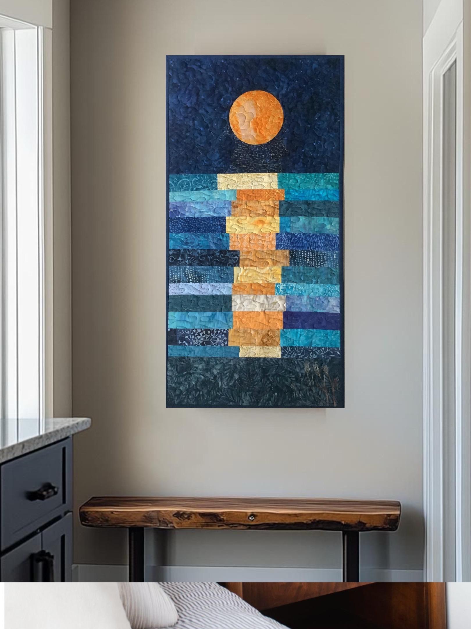 Moon art, moon reflection quilt, quilted wall hanging, wall art qui...