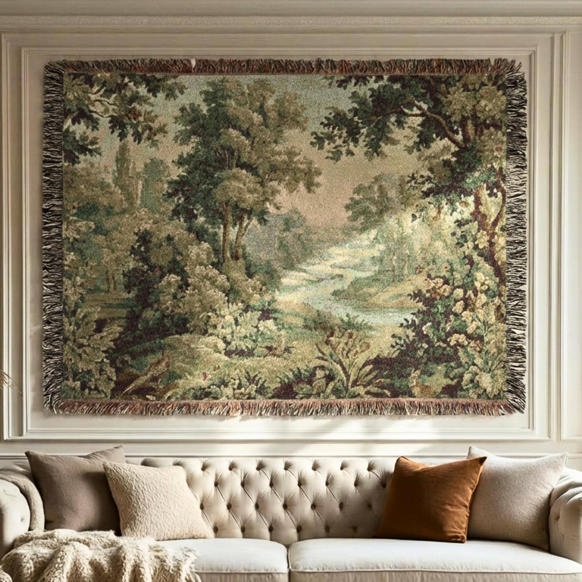 This woven jacquard verdure tapestry is inspired by classic French landscape textiles traditionally ...