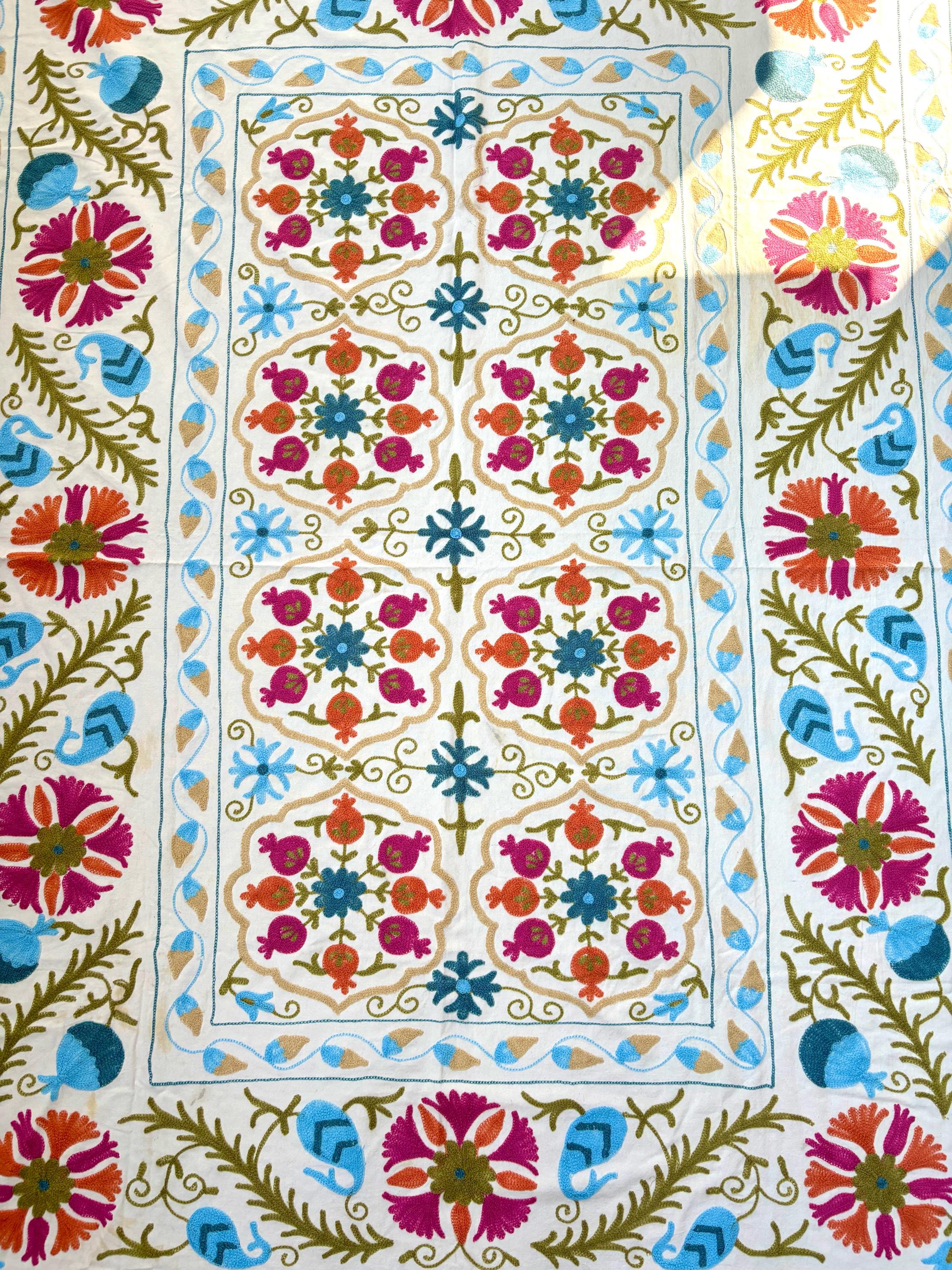 Suzani Hand Embroidered Wall Hanging, Cotton Embroidery Throw, Handmade Tapestry, Suzani Embroidery ...