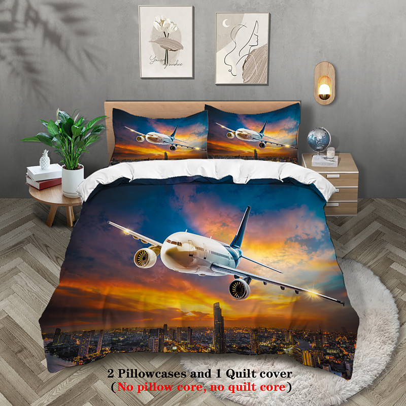 • Sunset Sunset Civil Aviation Aircraft Printed 3-Piece Down Quilt Se...