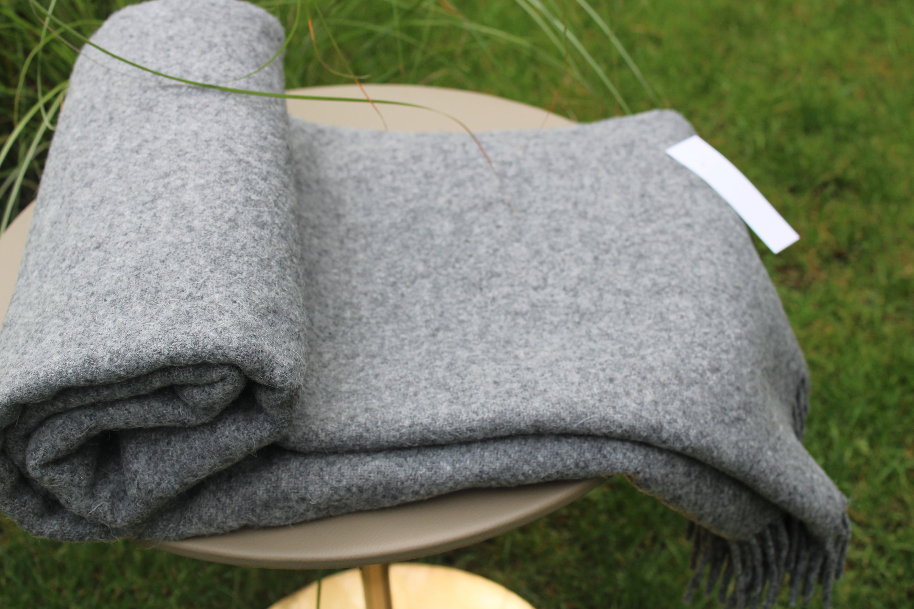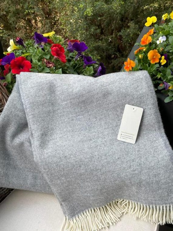 Cozy Grey Color Wool Throw Plaid - 100% New Zealand Wool Blanket, L...