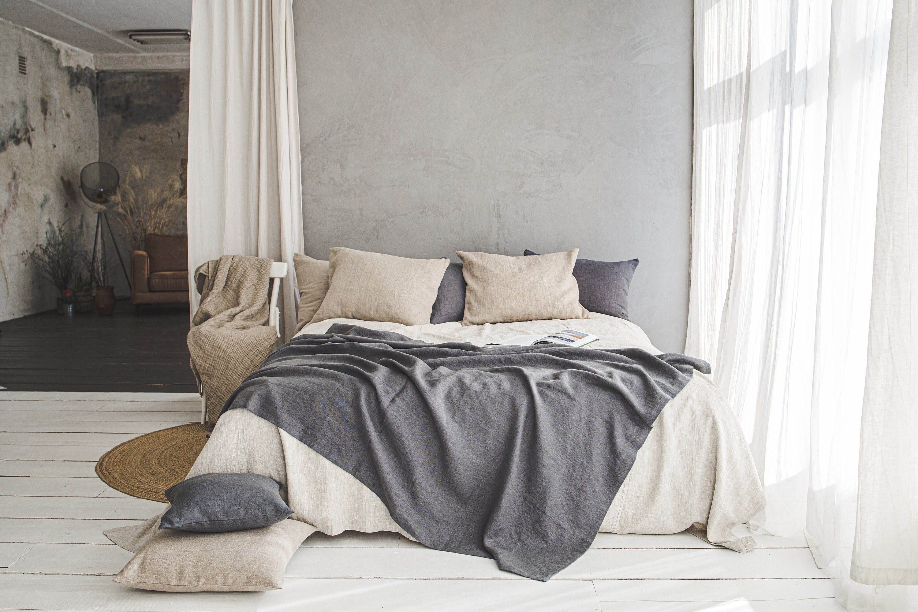 Linen throw blanket in various colors, Dark grey linen blanket, Thi...