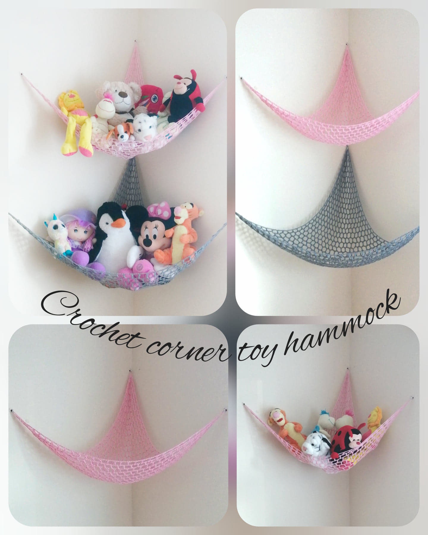 Toy hammock Nursery Storage Kids Room Wall Decor Cute Crochet Corne...