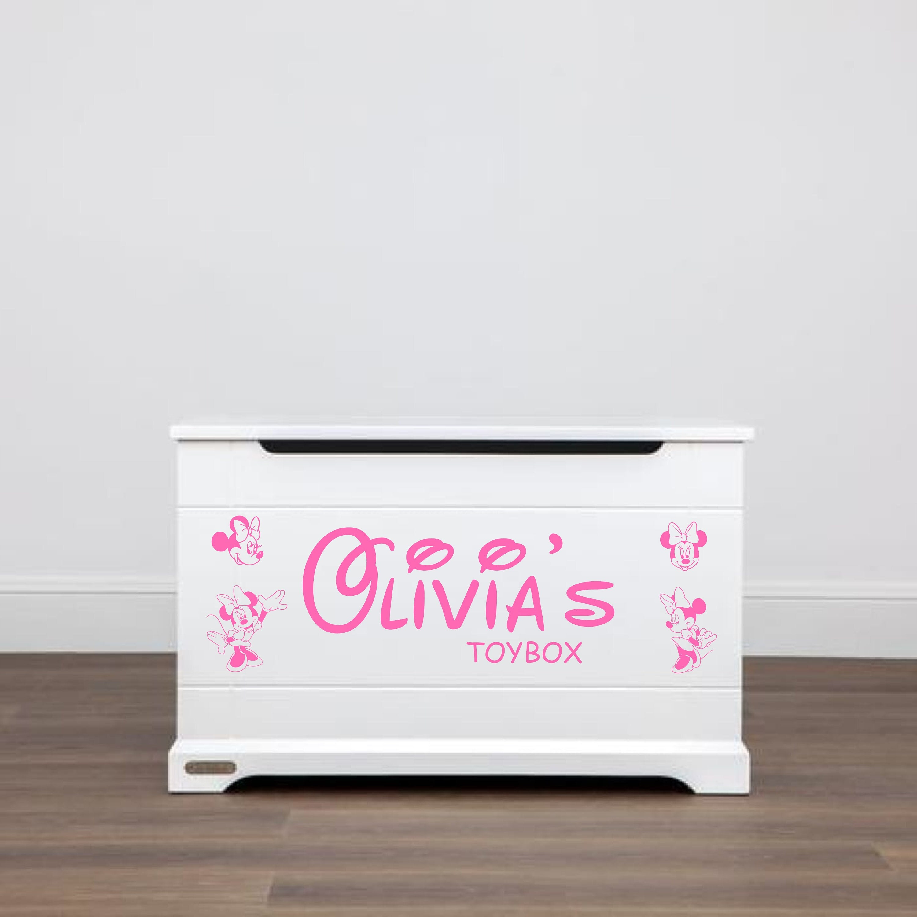 Personalised vinyl Toybox Name stickers Disney Font With x4 Minnie ...