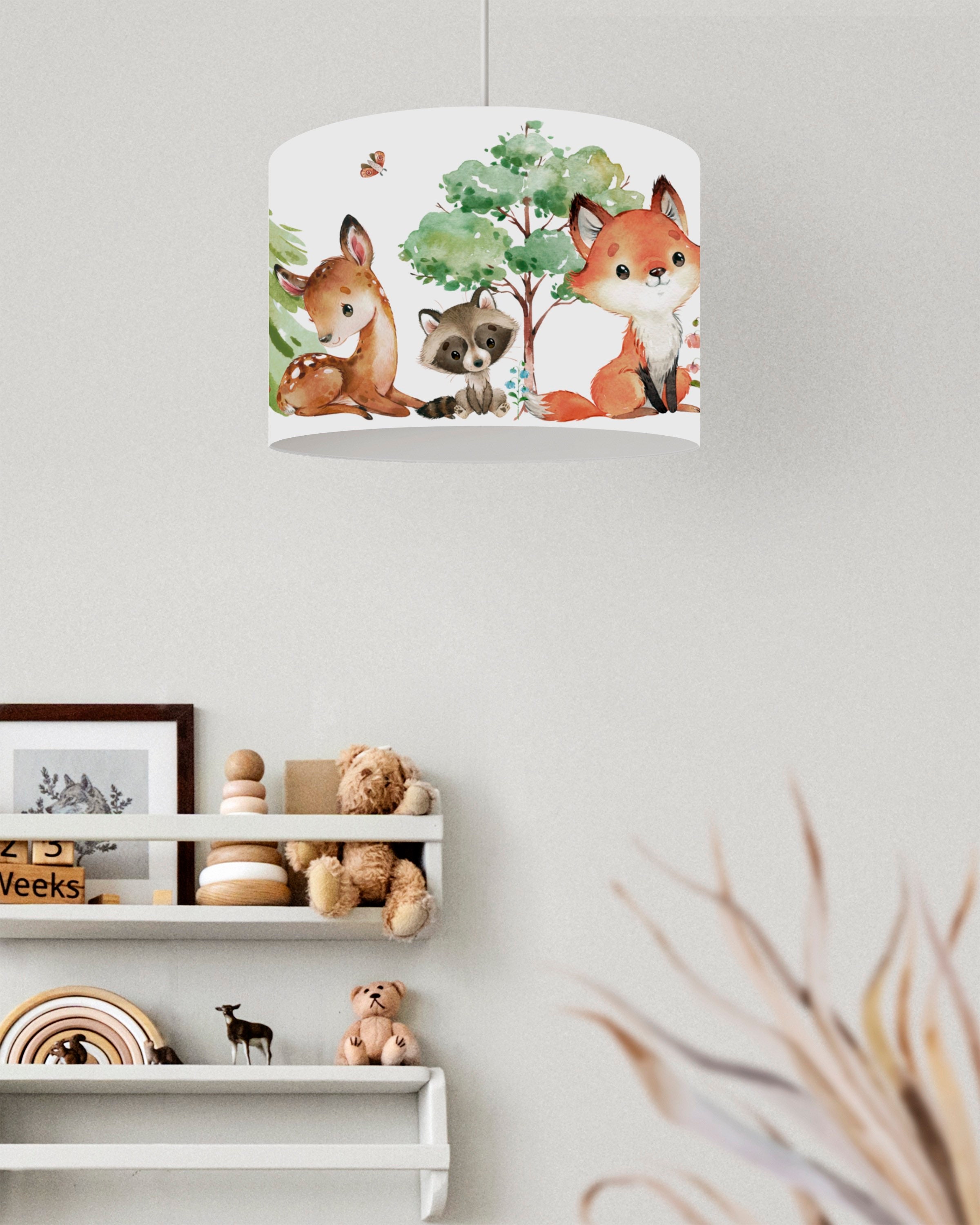 Forest Animals Lamp Fox, Ceiling Lampshade, Children's Room Lamp Be...