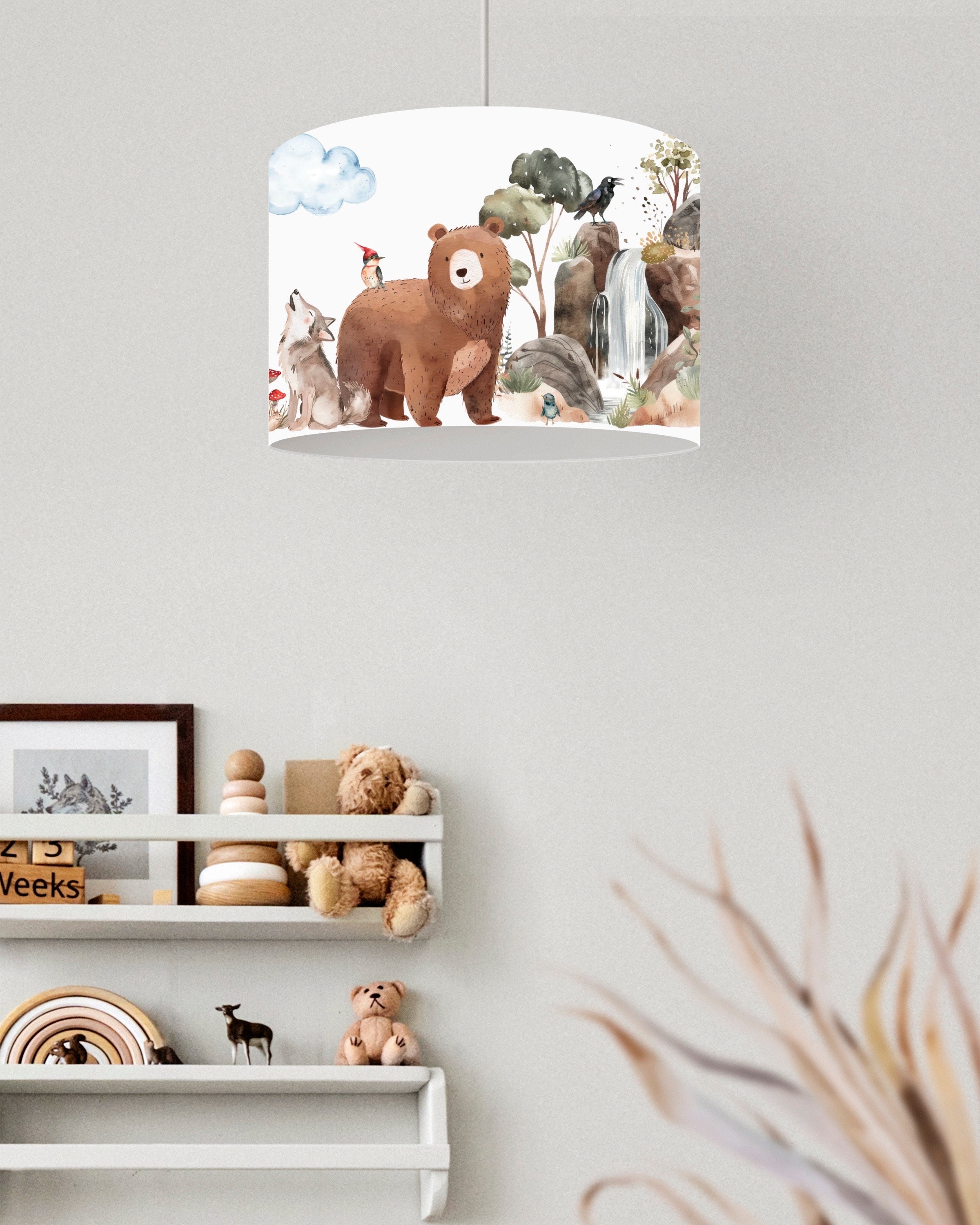 Lamp forest animals bear, lampshade ceiling, children's room lamp w...
