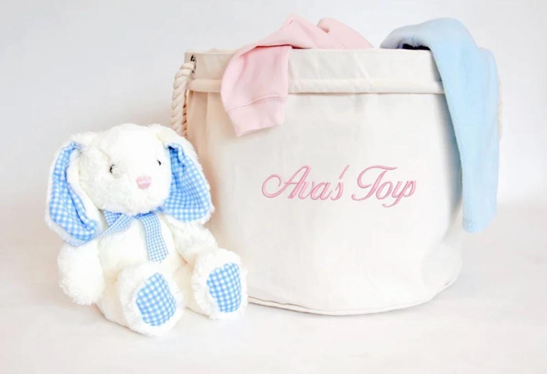 Personalised Children's Toys Storage Basket with an embroidered name. Perfect for storing children's...