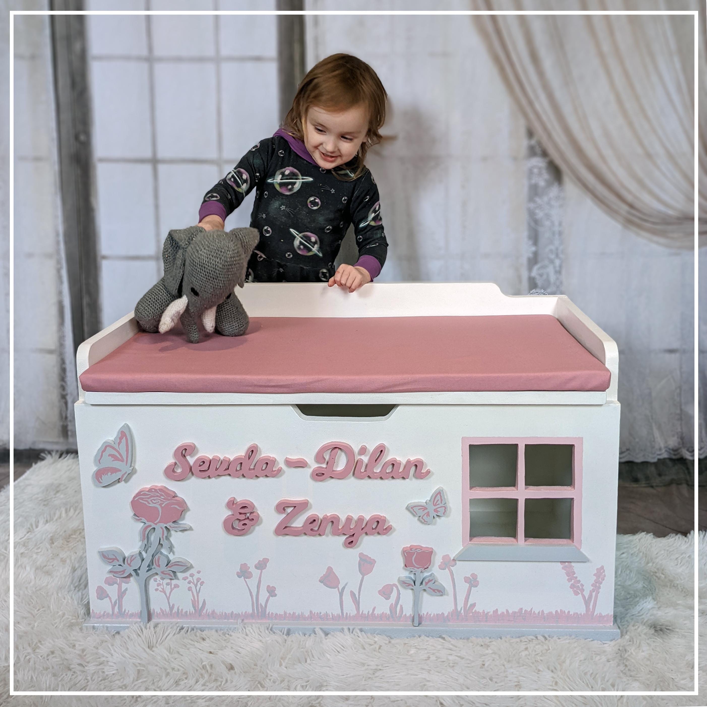 Personalised Pink Large Wooden Toy Box, Perfect 1st Birthday Gift f...
