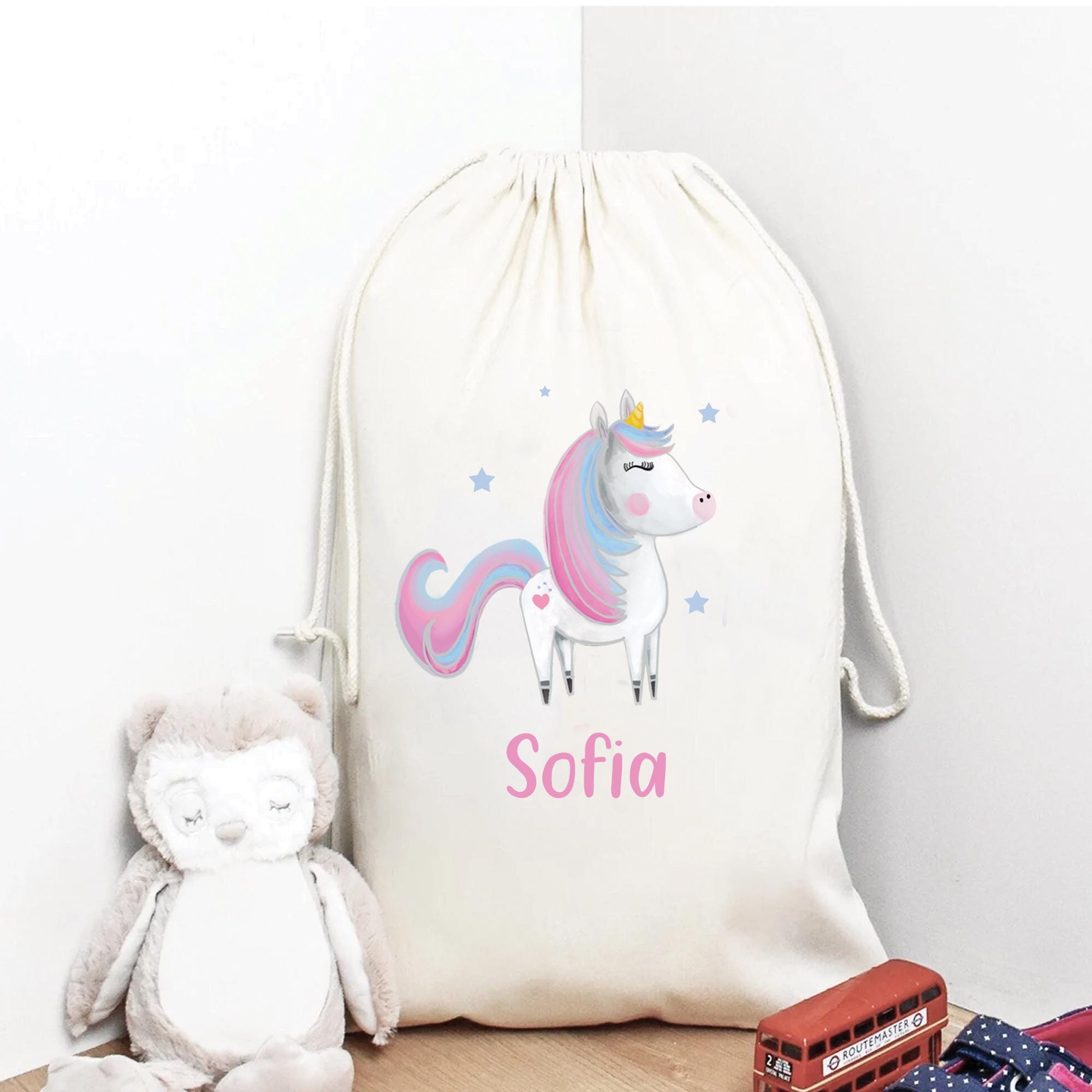 Personalised Unicorn Toy Sack, Personalised Toy Bag, Large Toy Sack...