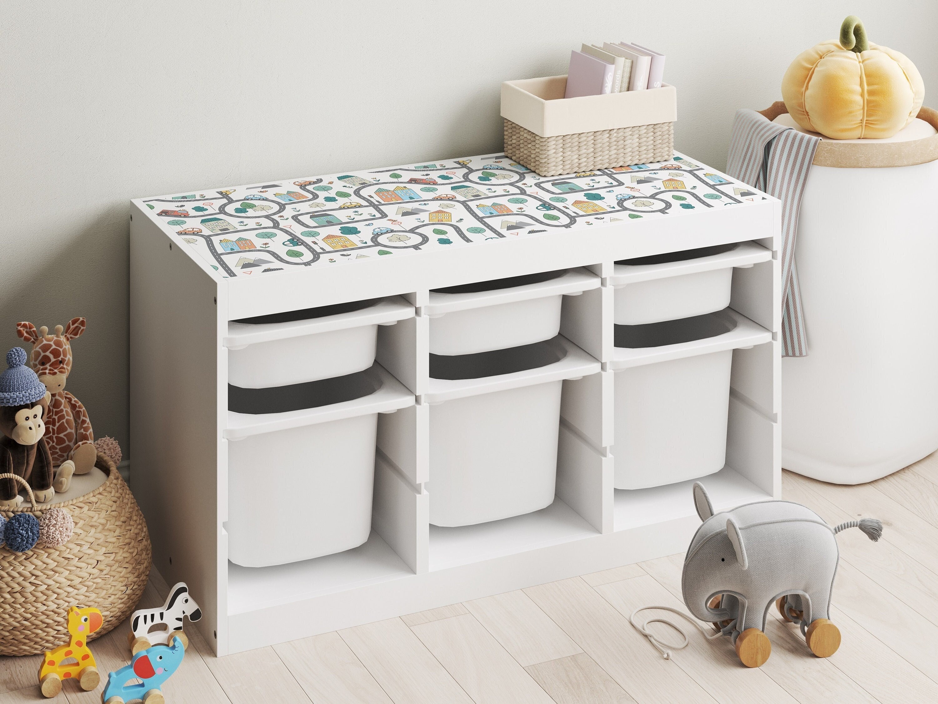 Ikea Trofast Decal, Streets and Cars, Storage Sticker, Removable De...