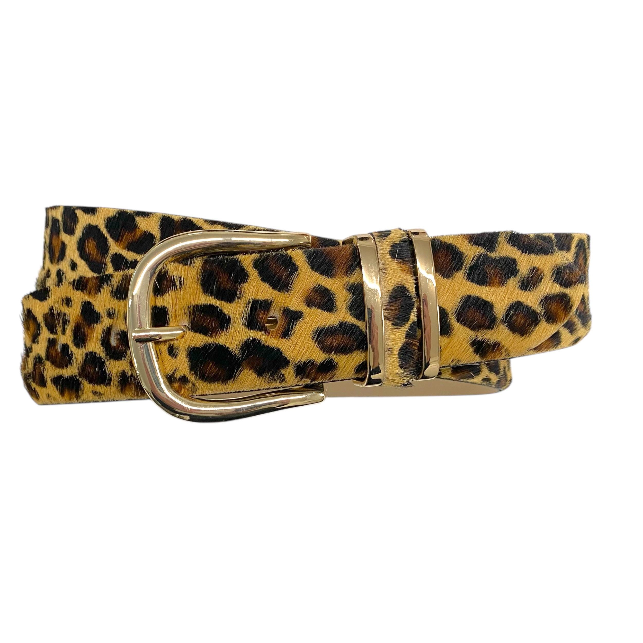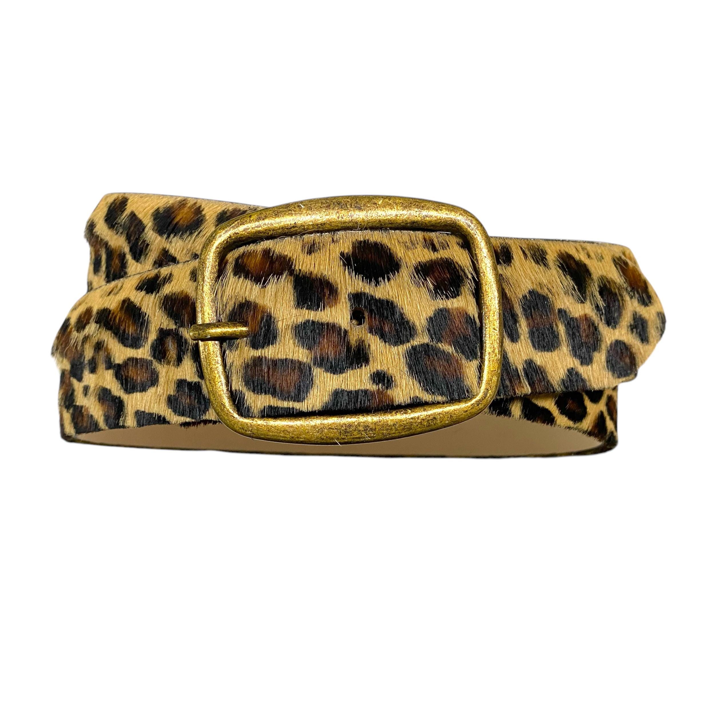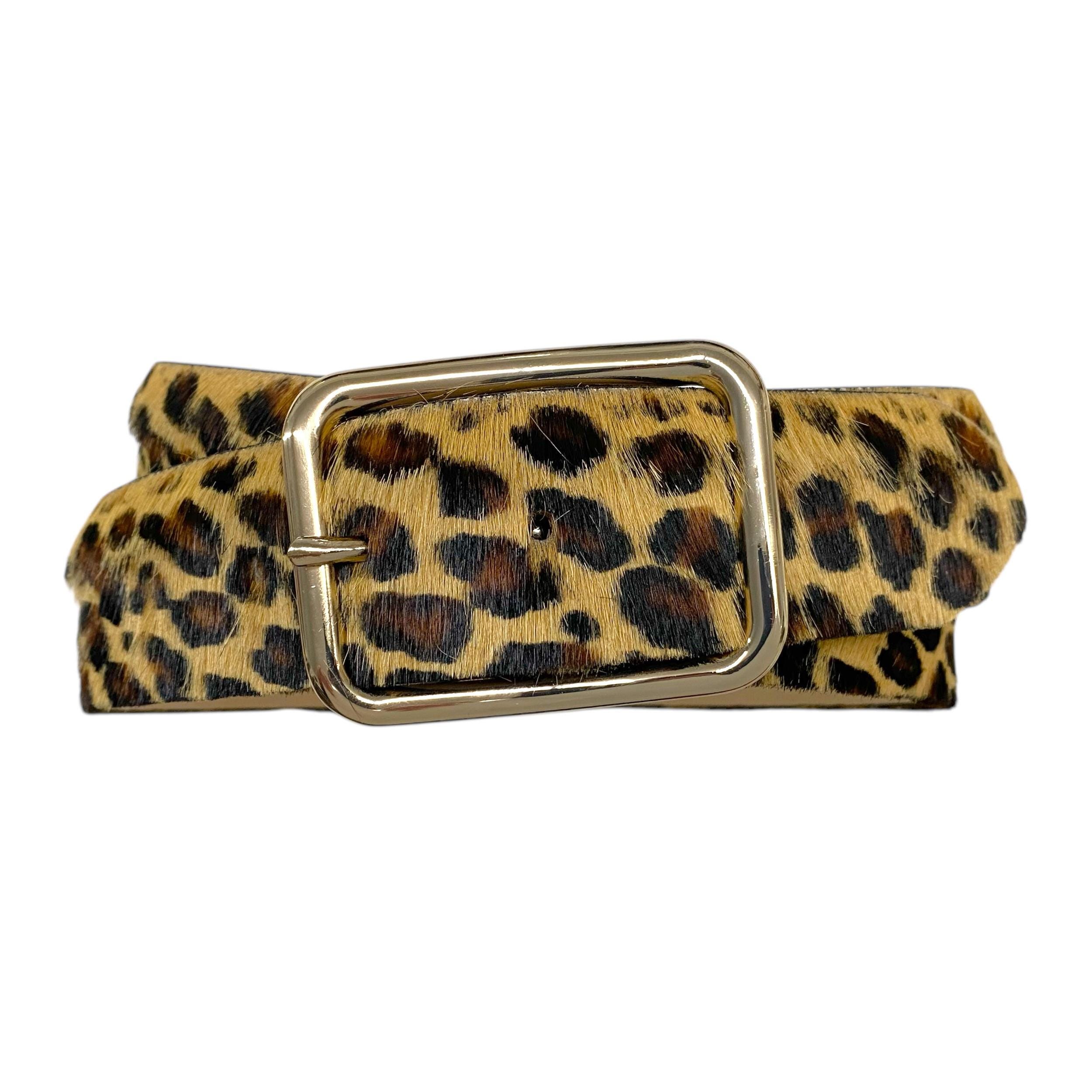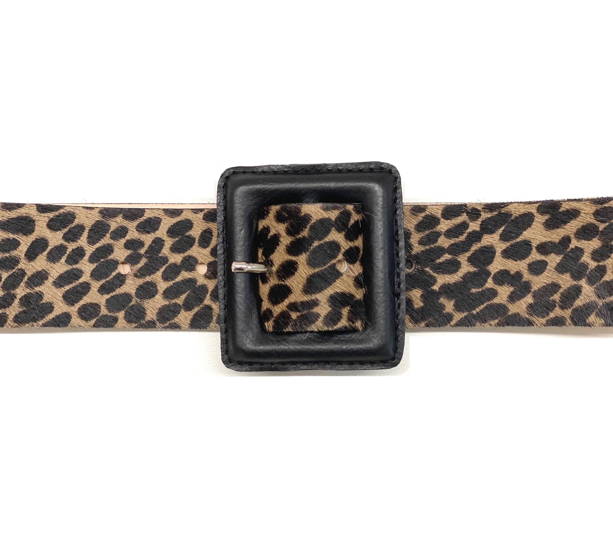 "Ladies belt made from genuine fur - cowhide. Belt with leo design. Each belt will be slightly ...