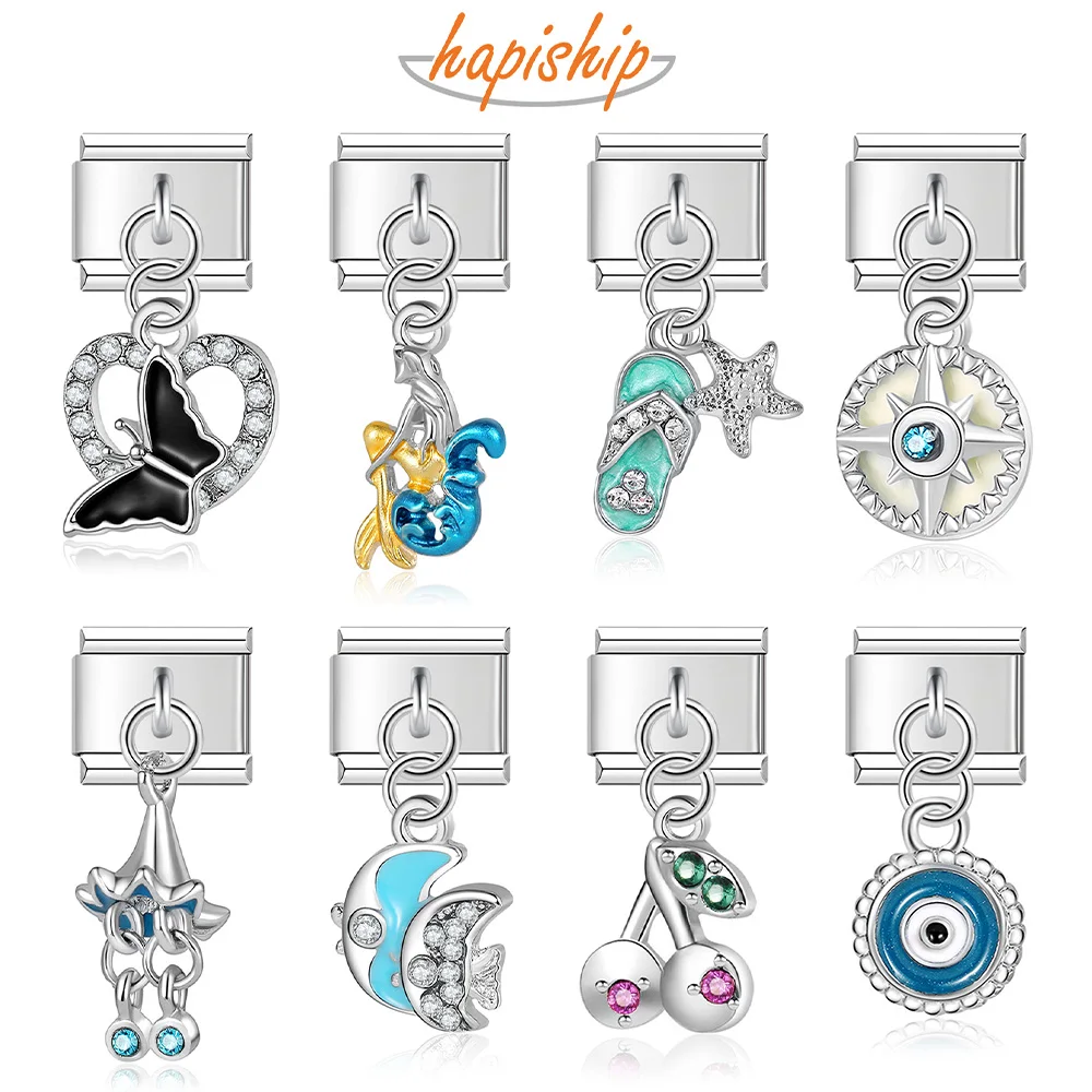 Hapiship New Original Daisy Fashion Fish Butterfly Eye CZ Charm Links Fit 9mm Bracelet Stainless Ste...