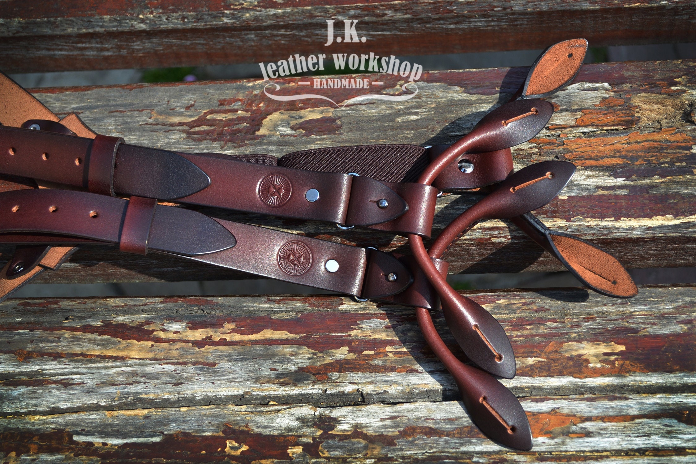 Men's leather suspenders with brass metal clamps. Personalized leather suspenders for men, perfect w...