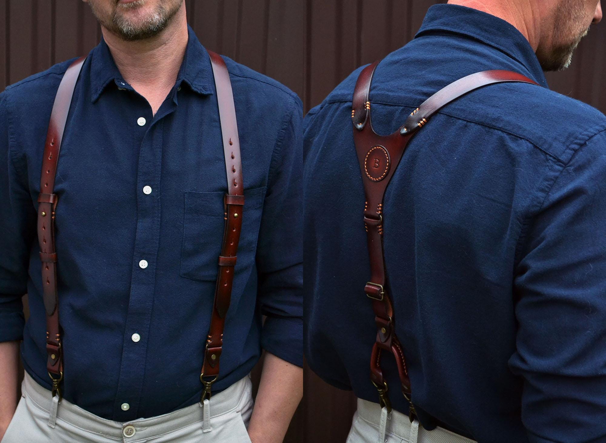 Men's leather suspenders. Gift for men. Personalized leather suspenders for men, perfect wedding gif...