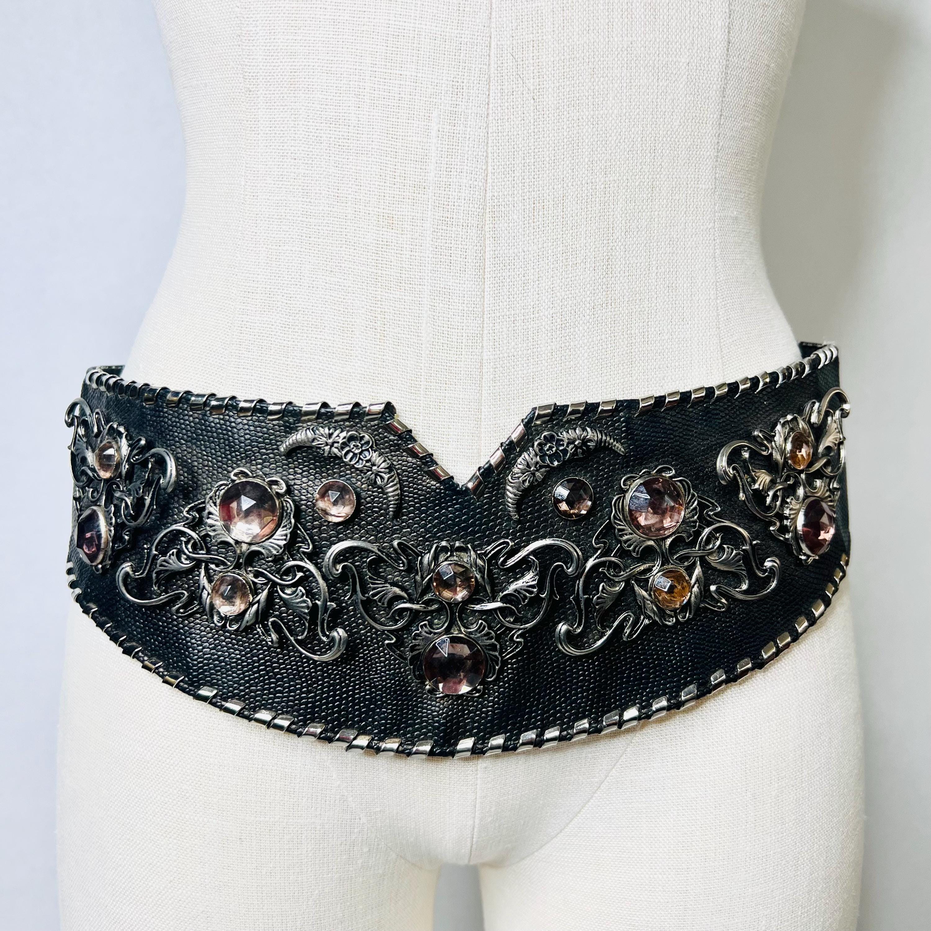 vintage 80s belt, jeweled belt, studded rhinestone belt, waist cinc...