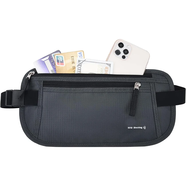 Custom Unisex Nylon Outdoor Hidden Zipper Travel Money Belt With Pl...