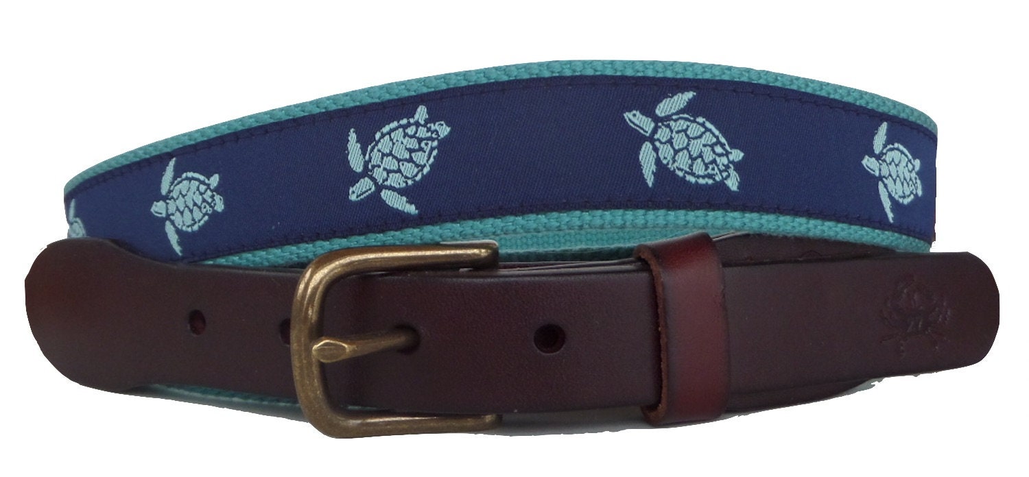 Teal and Navy Sea Turtle Leather Belt /Nautical Belt/Leather Belt /...