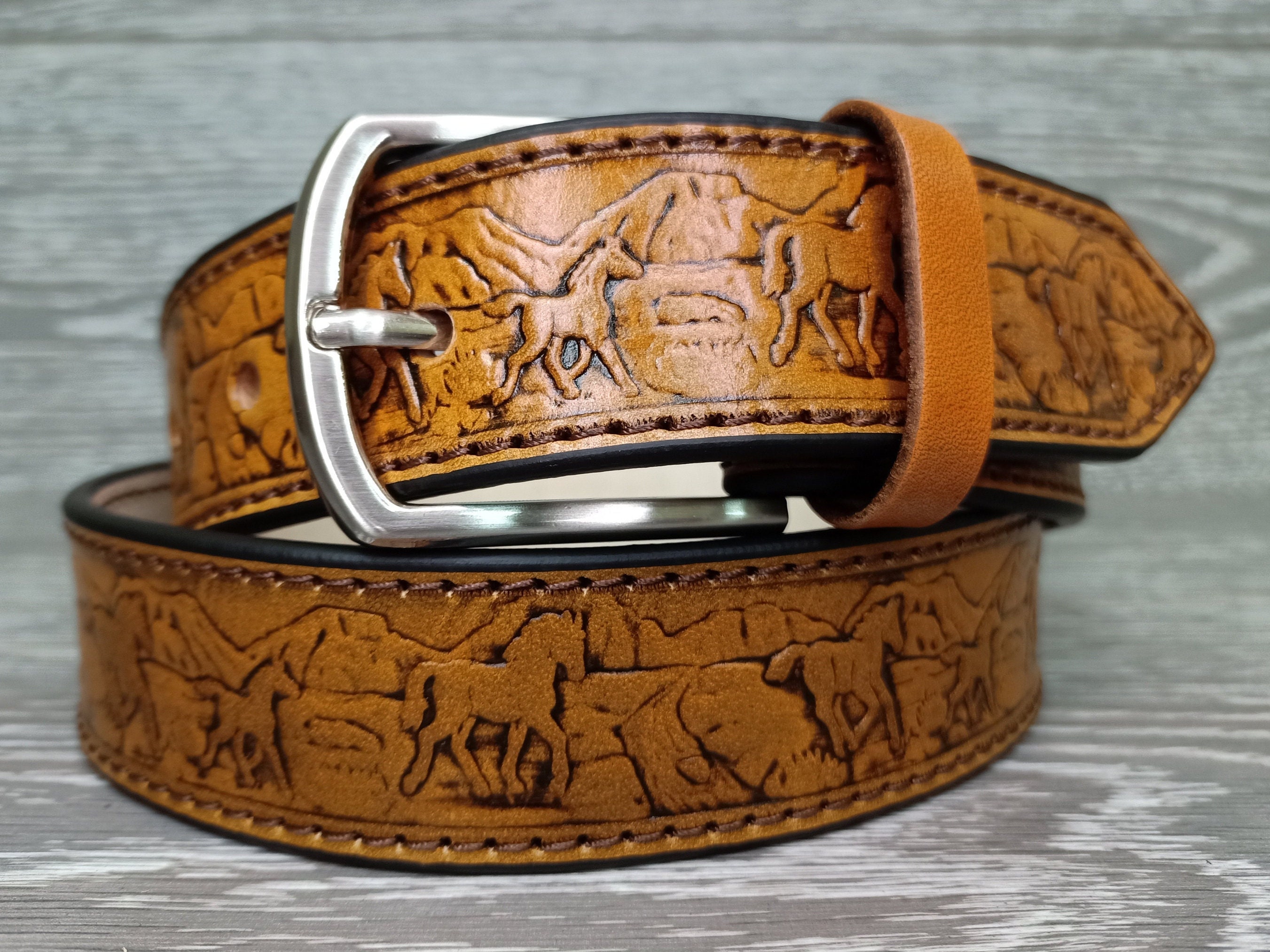 Leather belt, Brown leather belt, Tooled leather belt, Classic leat...