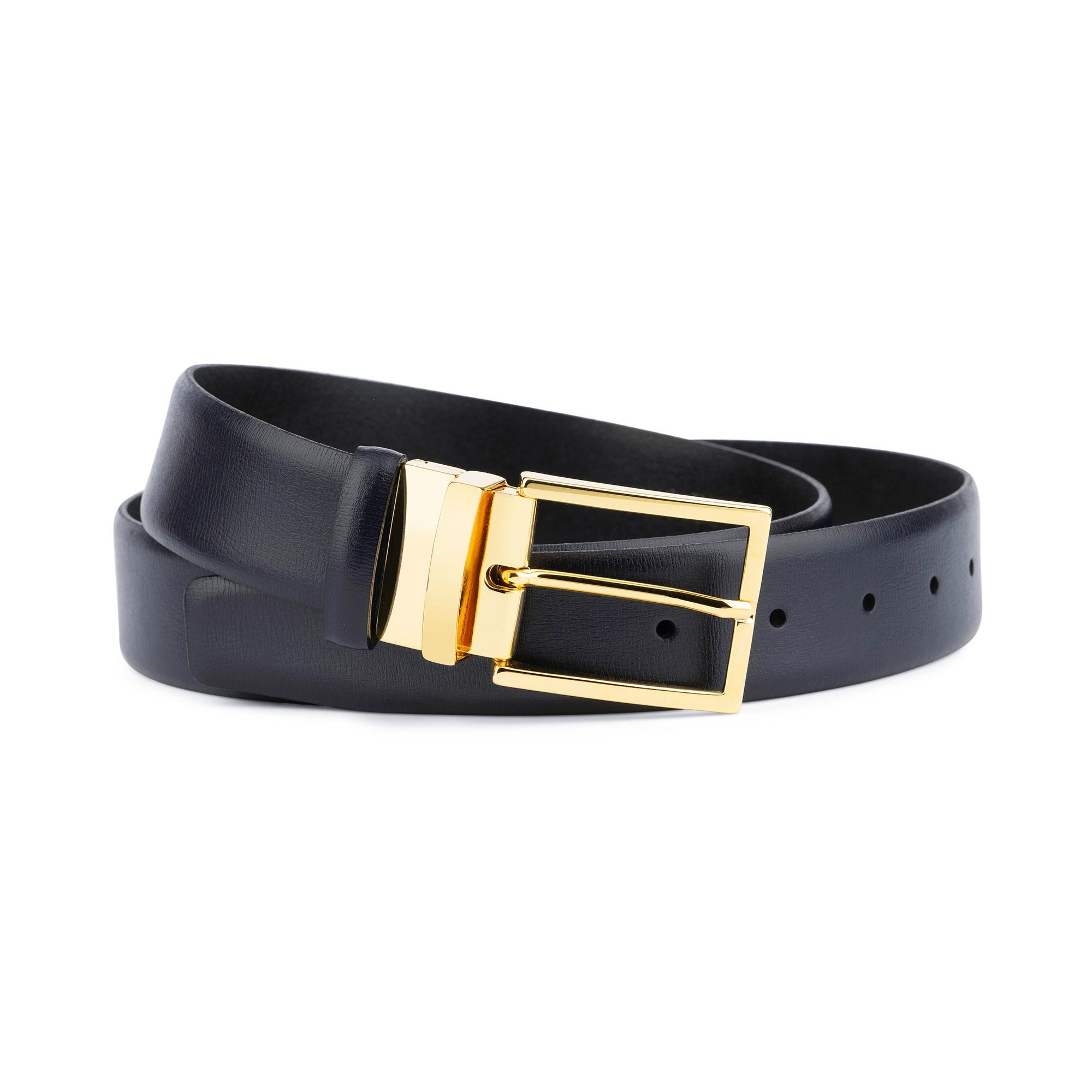 Navy belt With gold buckle Mens belts Blue leather belt For men Dre...