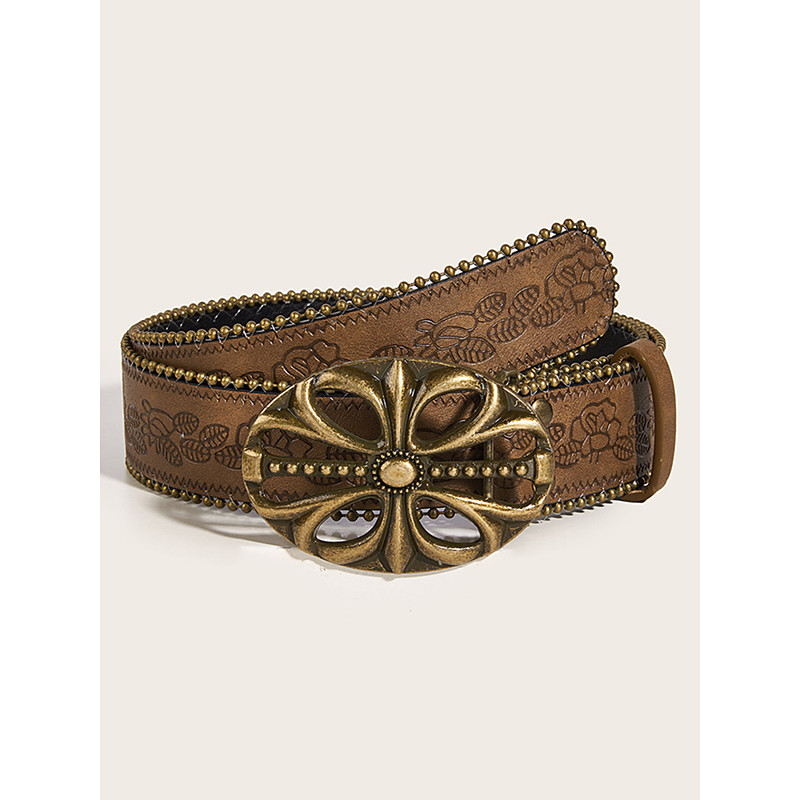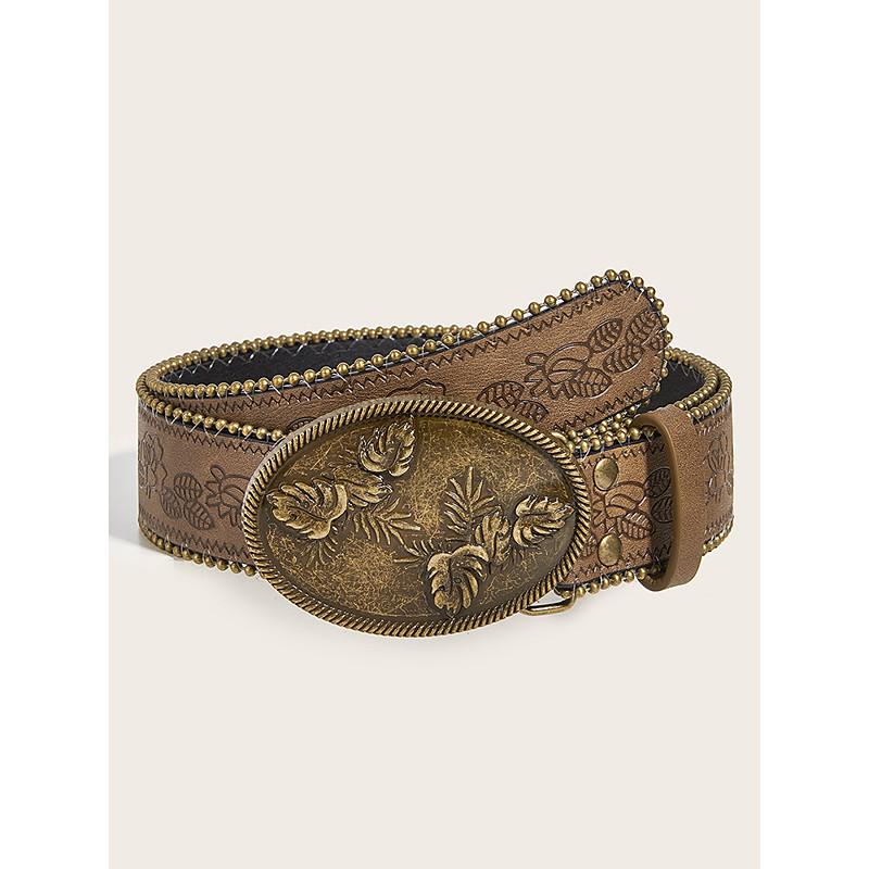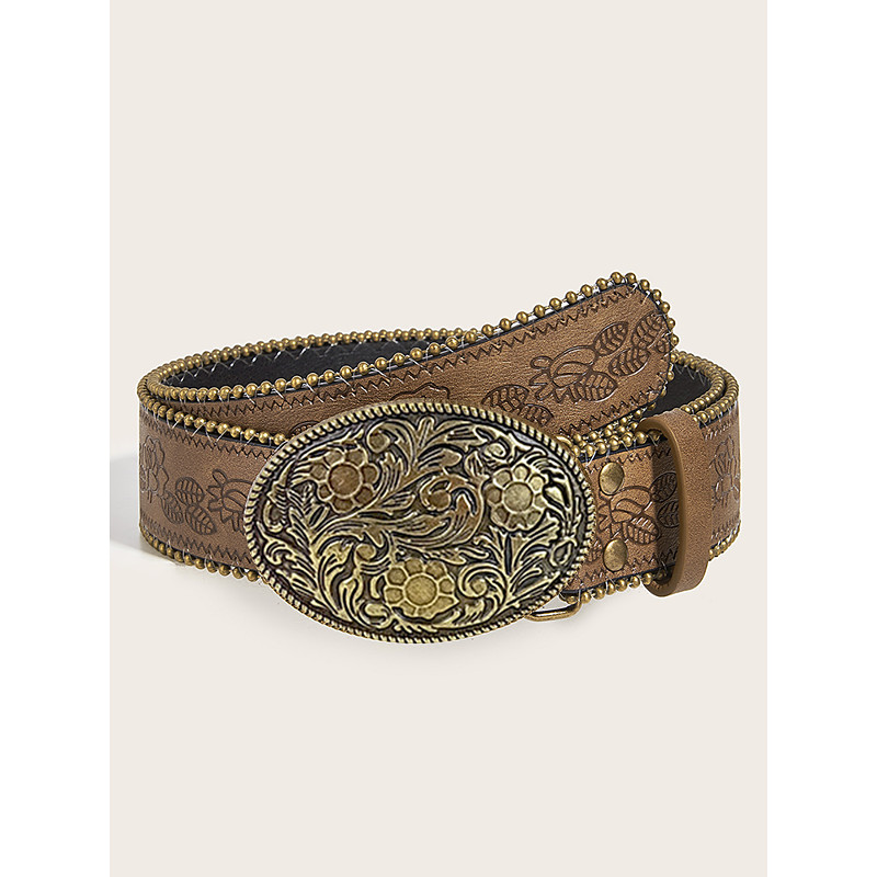 Women's Boho Floral Engraved Wide Leather Belt – Vintage West...