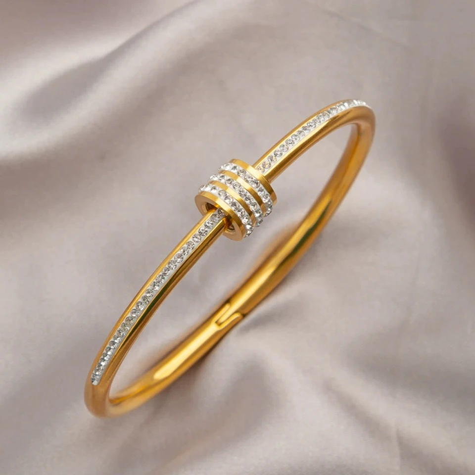 Yupsk Titanium Steel Slim Waist Zircon Charm Bangle Bracelet for Women Sliver Gold Color Plated Wate...