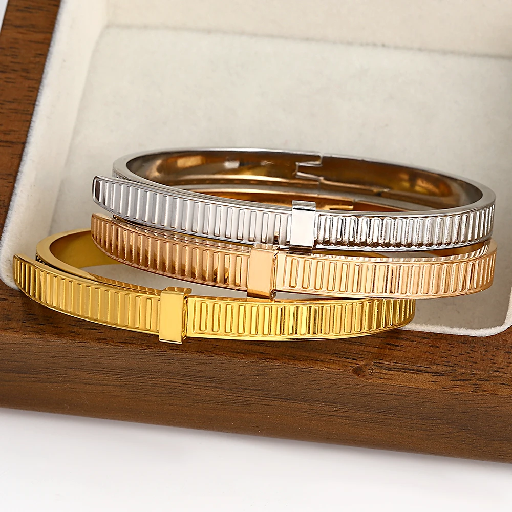 Luxury Design Buckle Belt Stainless Steel Bangle Bracelet Women Gold Silver Color Cuff Bracelets Wat...