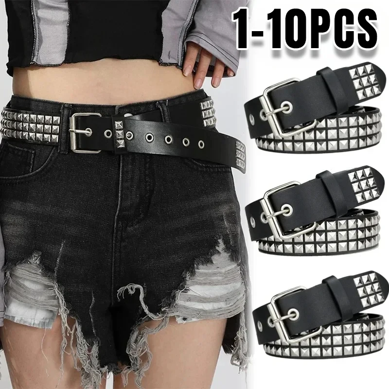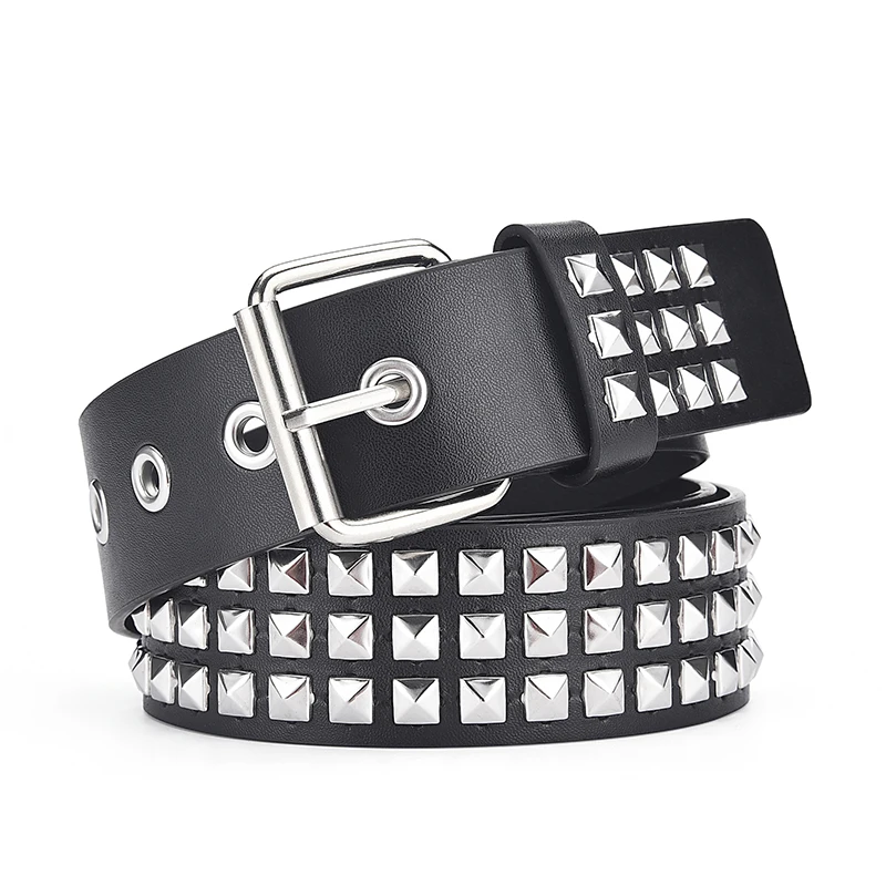 2023New Square Bead Rivet Belt Metal Pyramid Belt Men and Women Punk Hardware Jeans Belt Y2K Belt De...