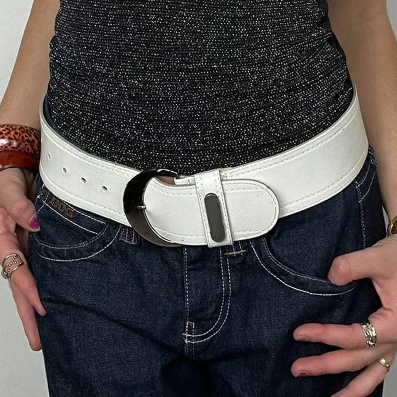 vintage White Wide Belt Y2K Metal Ring Women's Punk Belt Harajuku Gothic Hot Girls PU Leather Belt P...