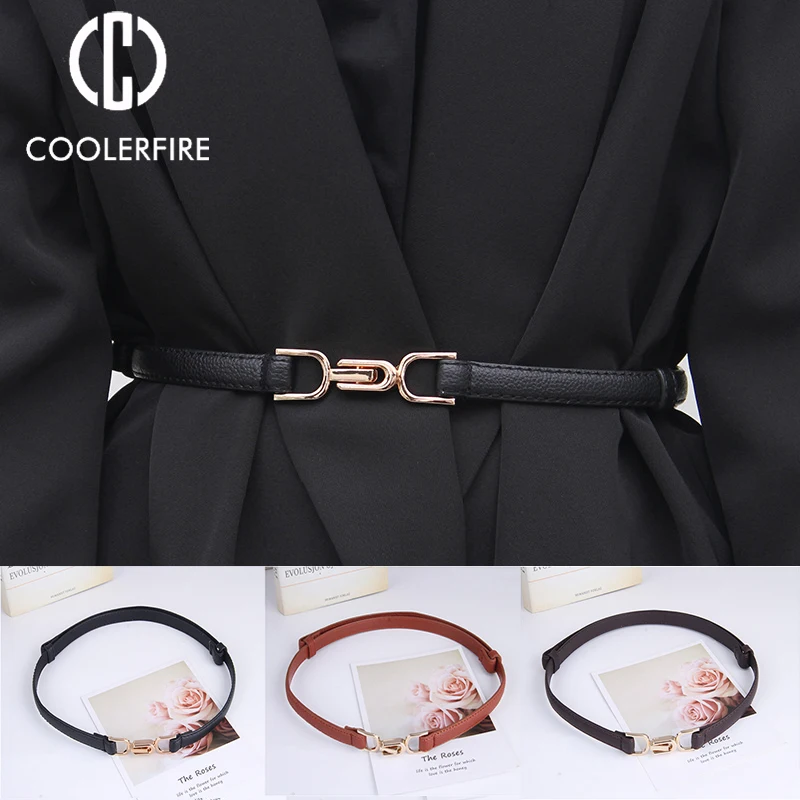 New Luxury Gold Buckle Genuine Leather Belt Women Fashion Cowskin Thin Metal Black White Belts Femal...