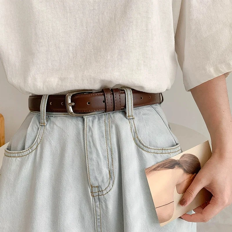 Summer women's retro frosted belt, silver square needle, versatile, trendy, fashionable, personalize...