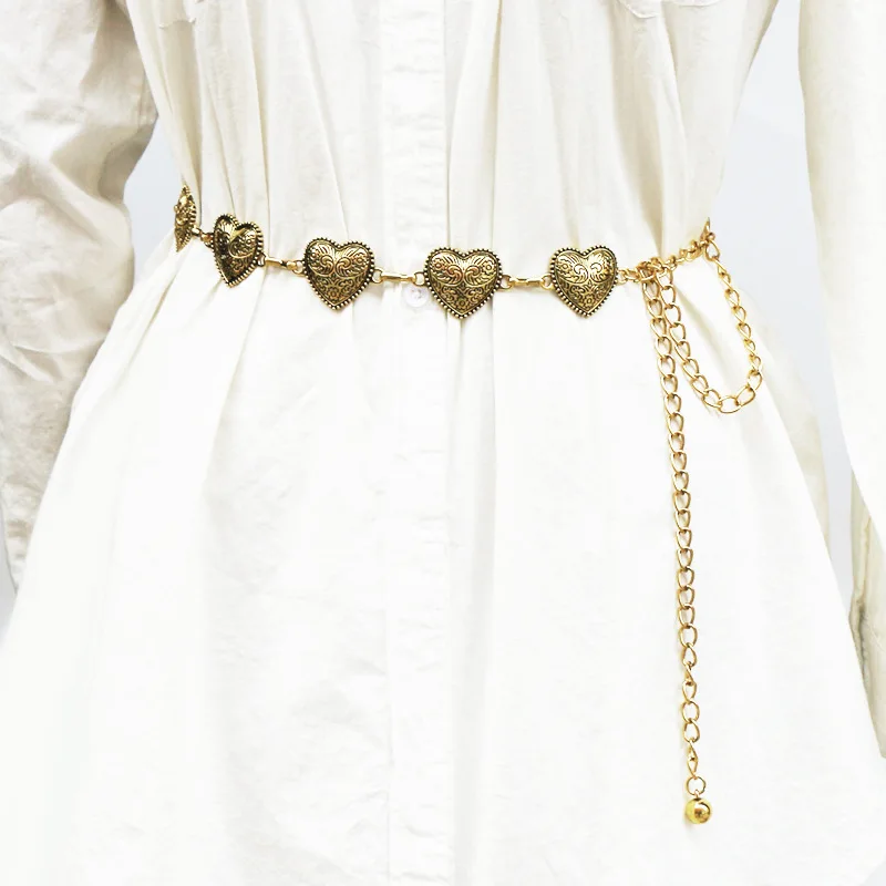 Metal Women Chain Belt Heart Waist Belt Fashion Boho Style Golden W...